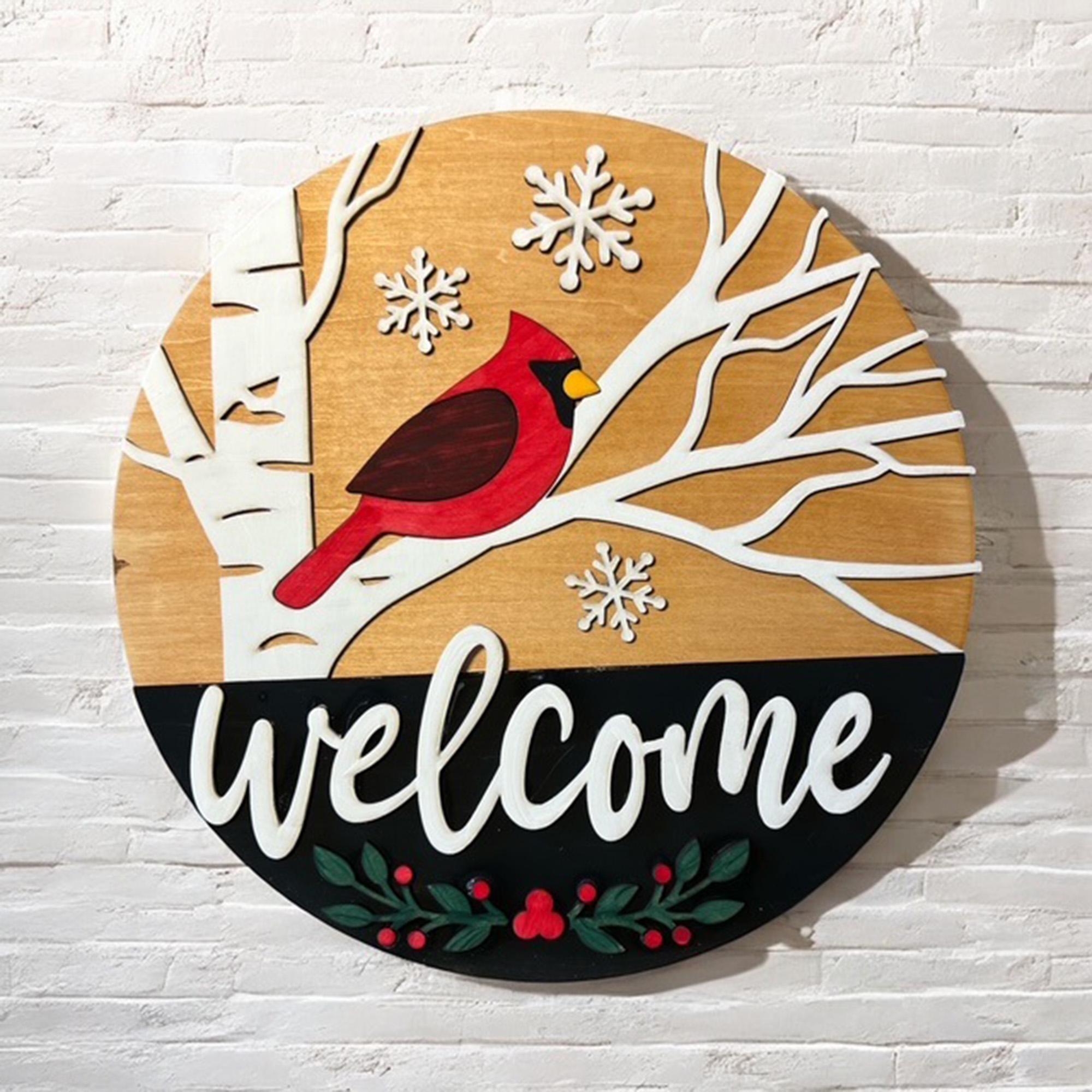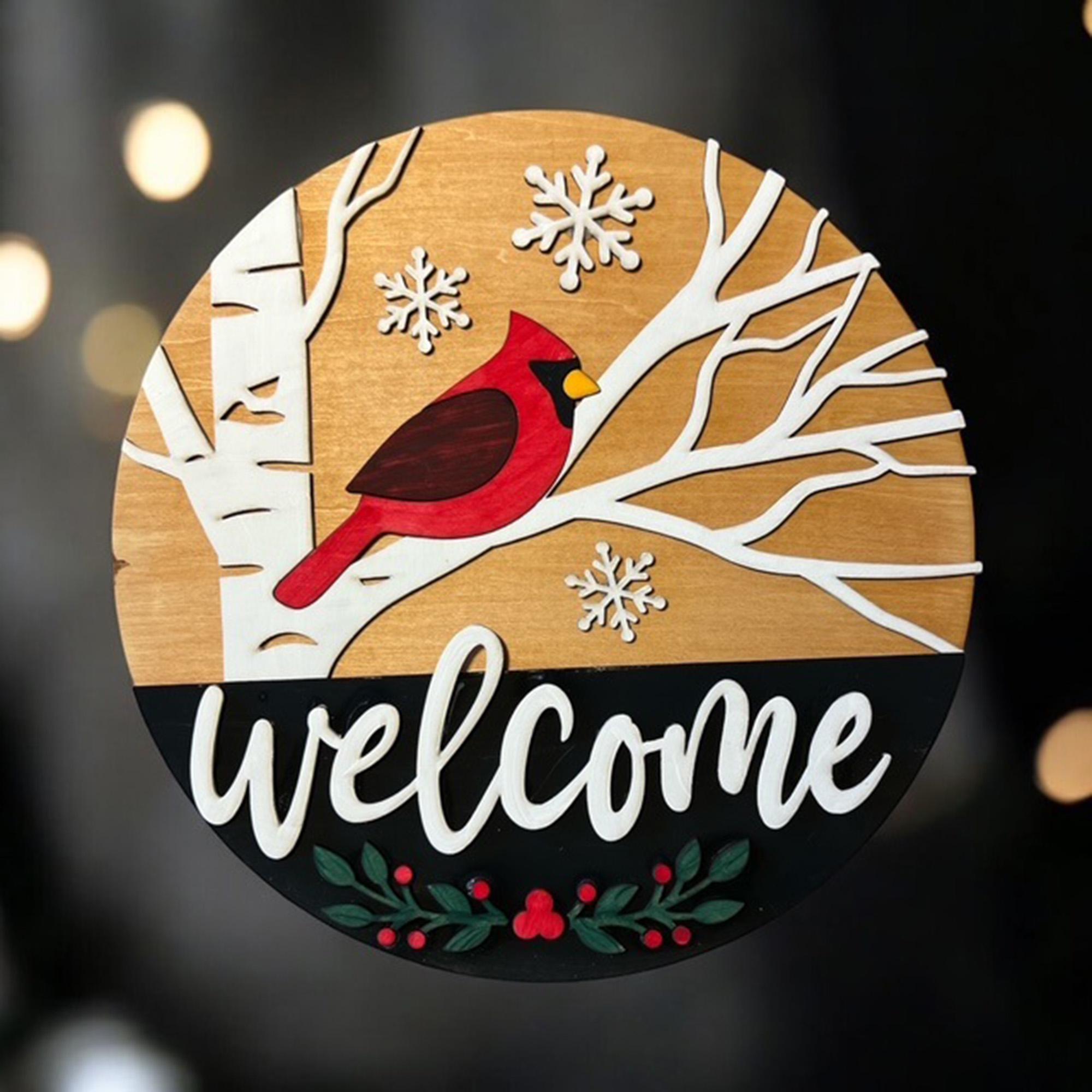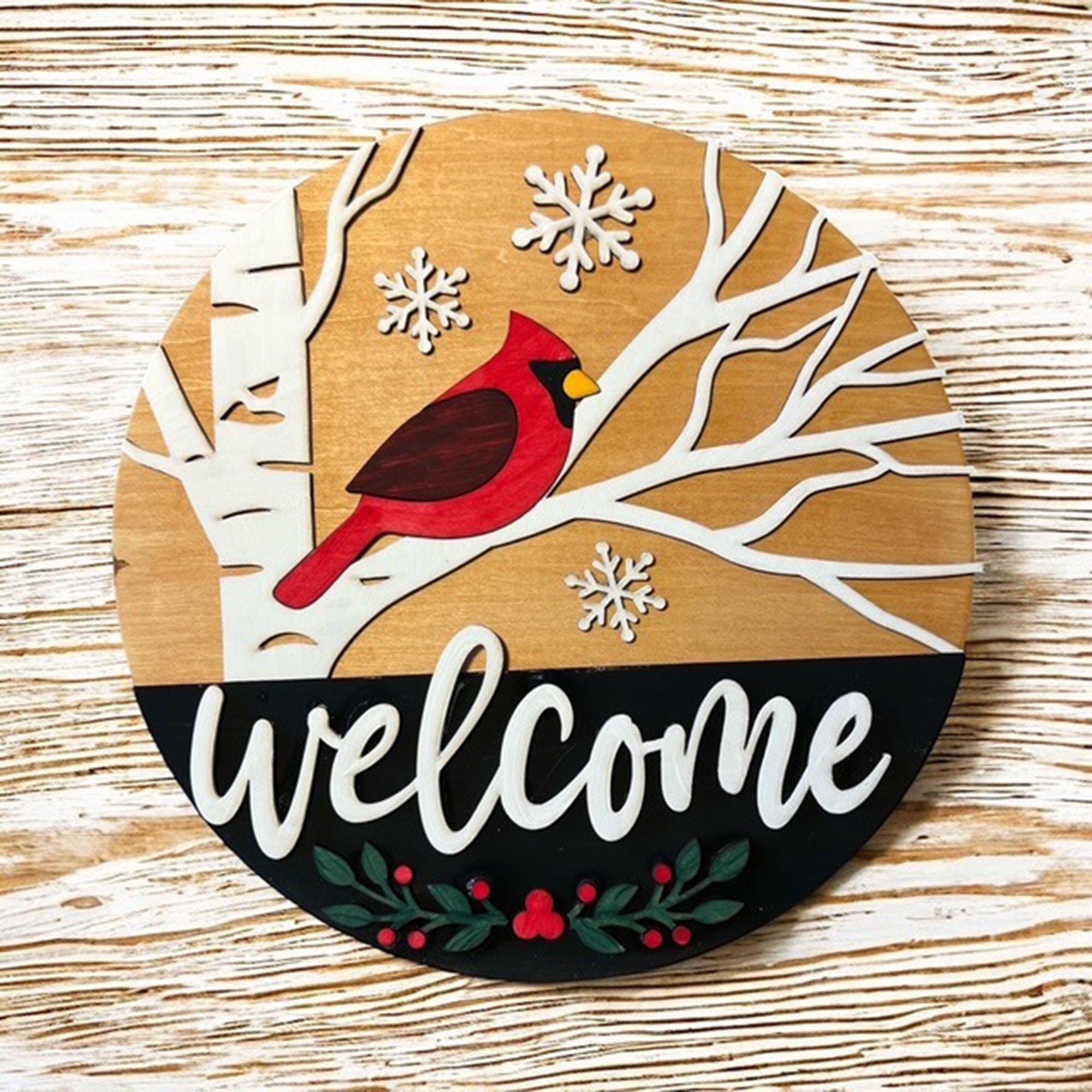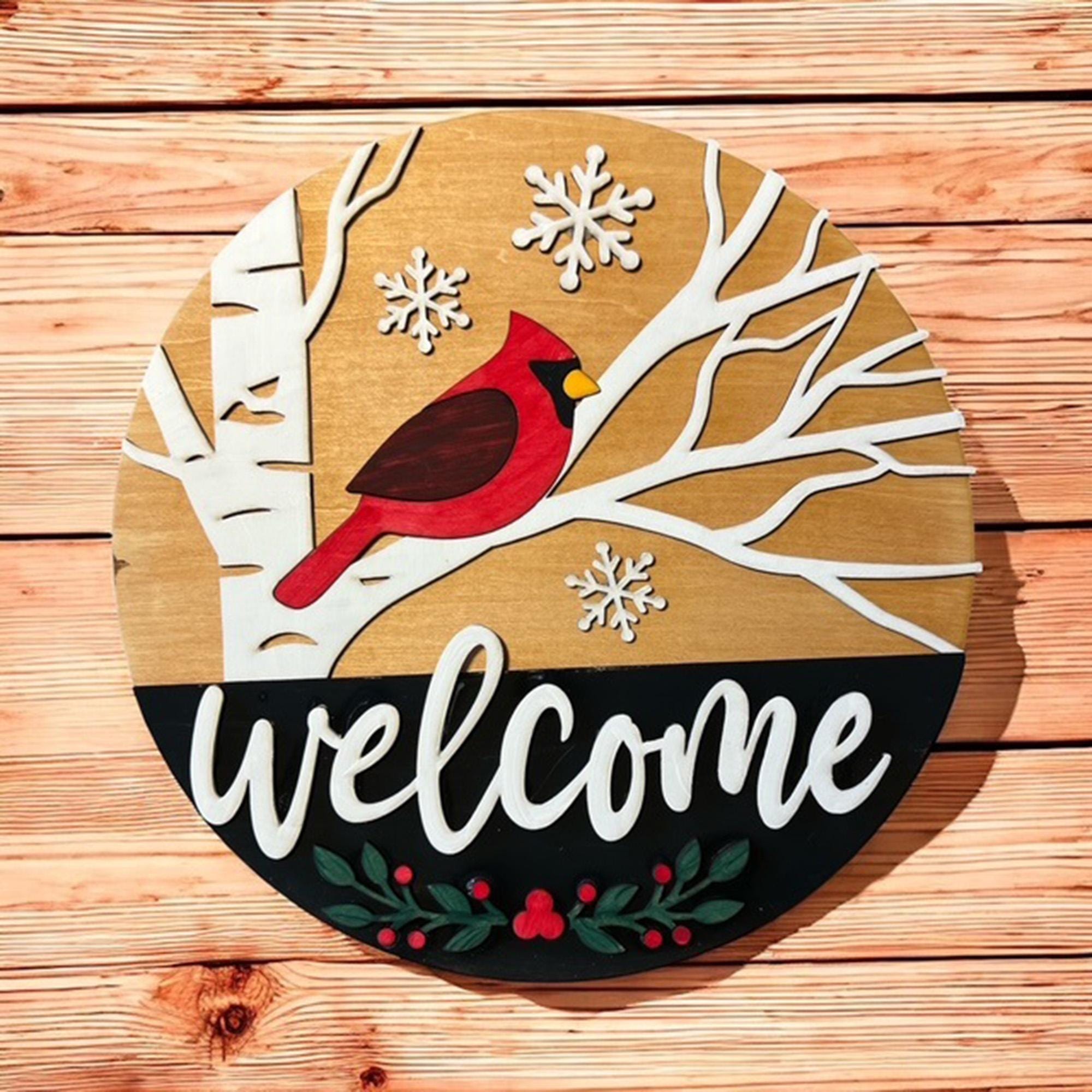 Handmade from quality wood, this sign measures 11.5 inches in diameter, featuring a hand-painted cardinal perched above the welcoming message. Its easy-to-hang design fits most standard doors or porch hooks. Whether for everyday use or seasonal celebration, it adds a warm, inviting touch to your entryway.
