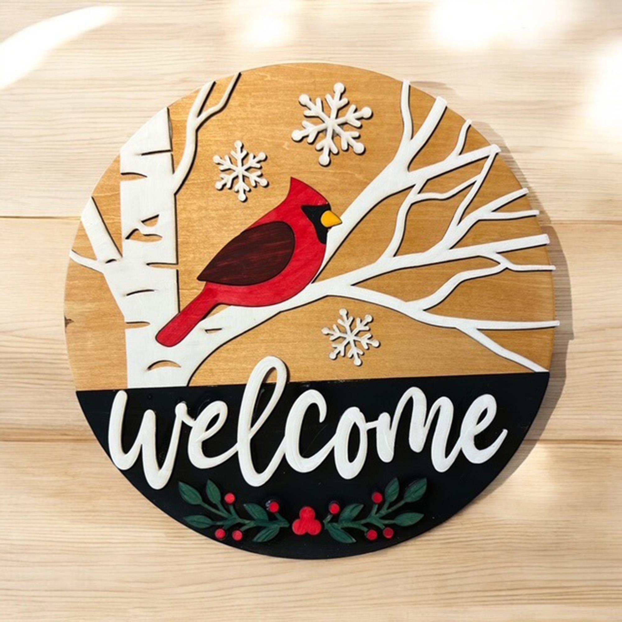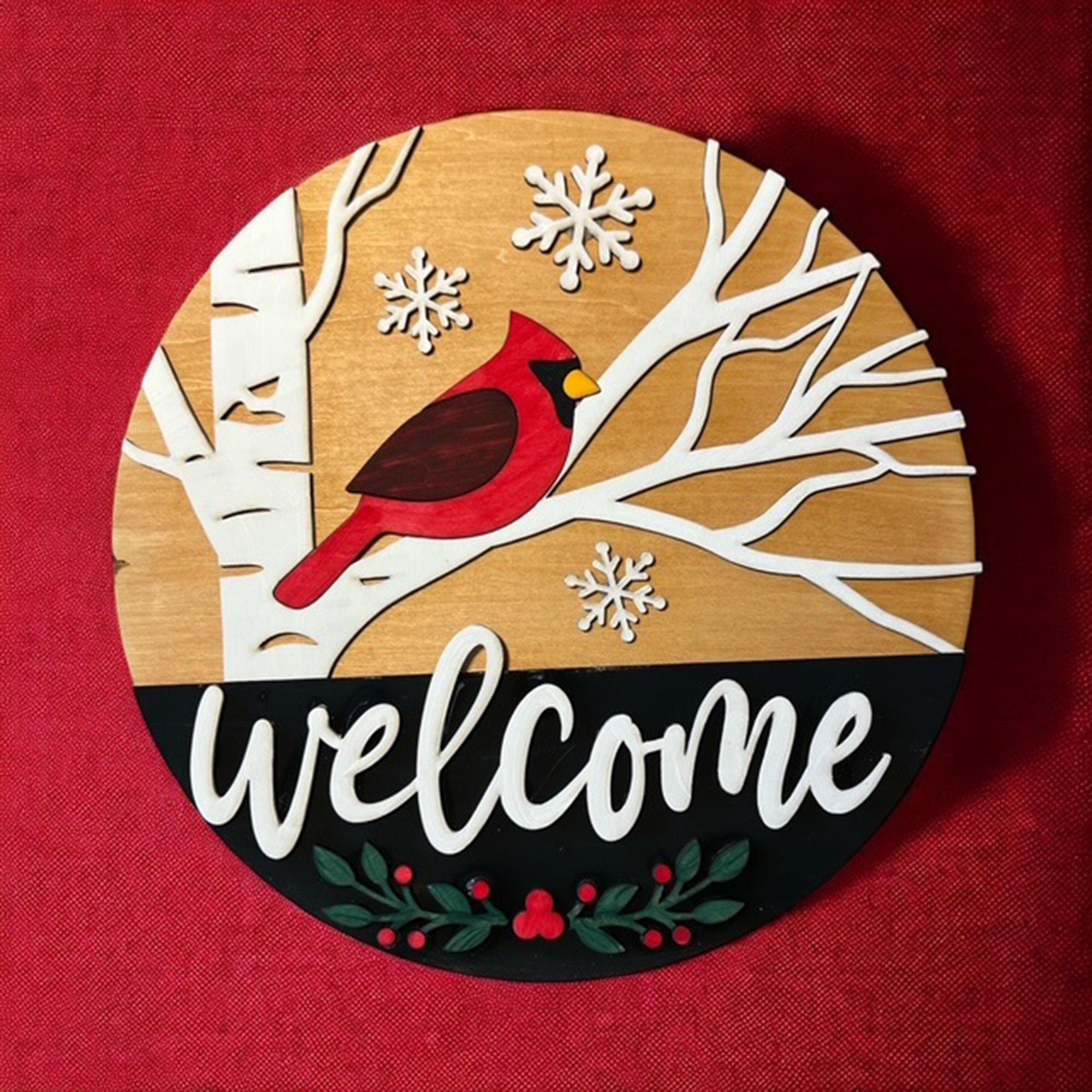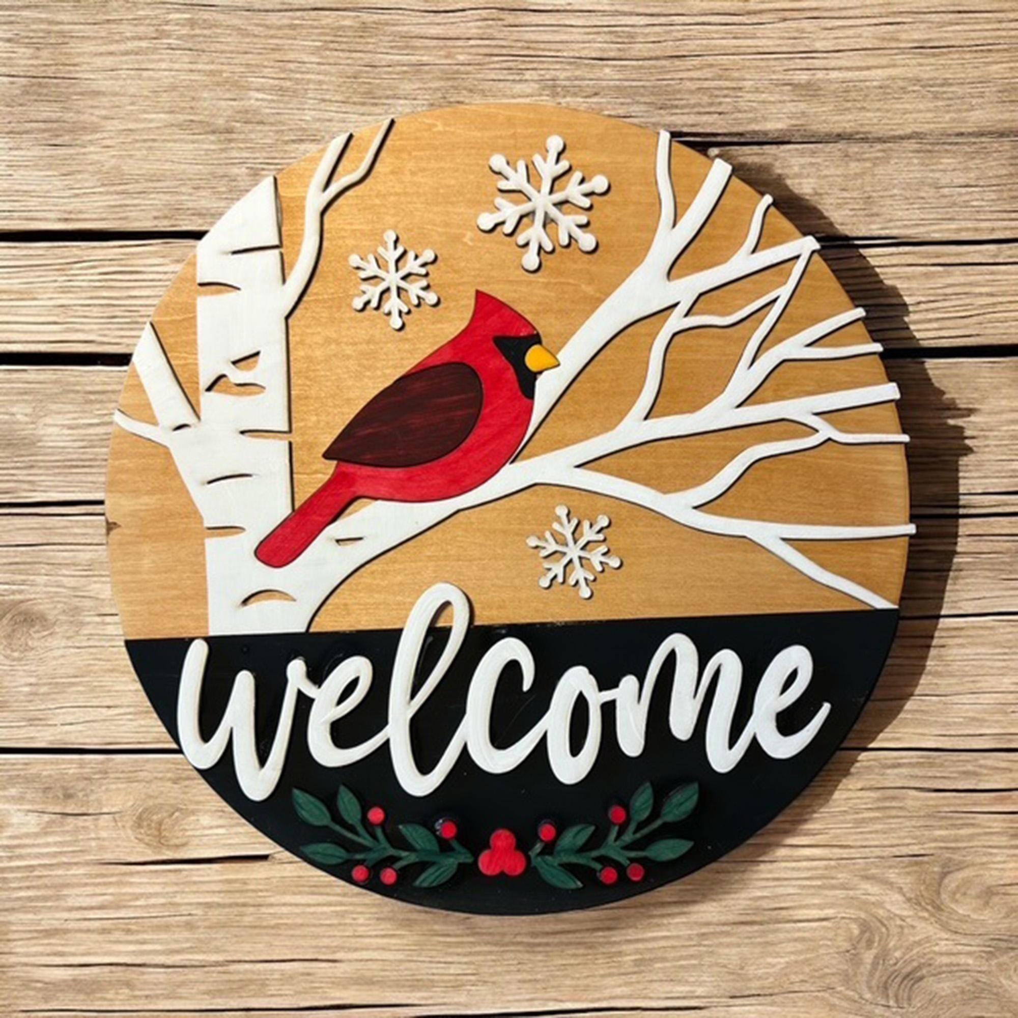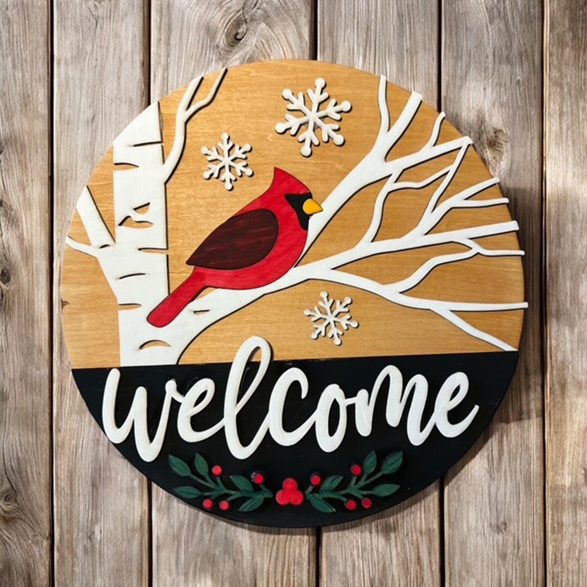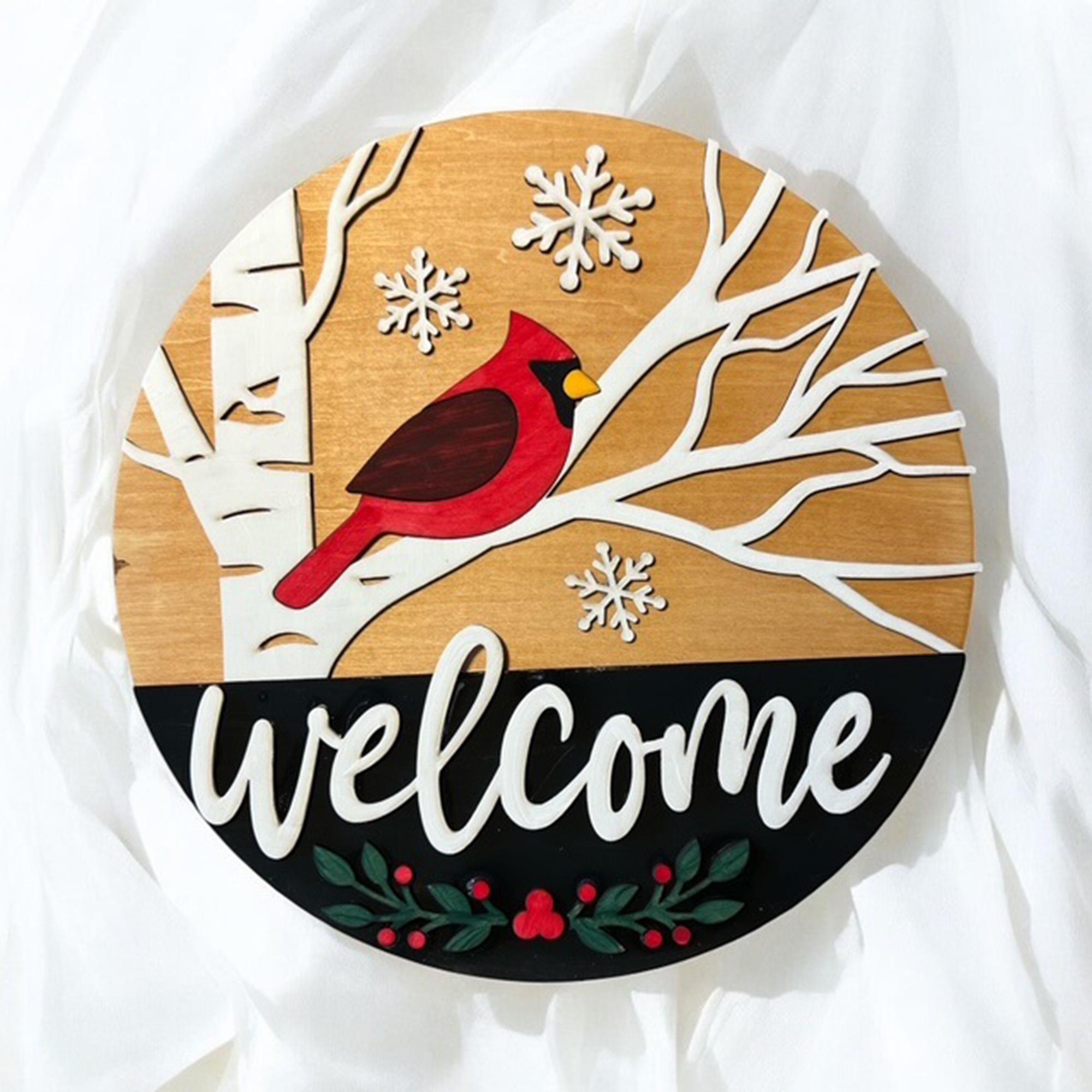 Handmade from quality wood, this sign measures 11.5 inches in diameter, featuring a hand-painted cardinal perched above the welcoming message. Its easy-to-hang design fits most standard doors or porch hooks. Whether for everyday use or seasonal celebration, it adds a warm, inviting touch to your entryway.