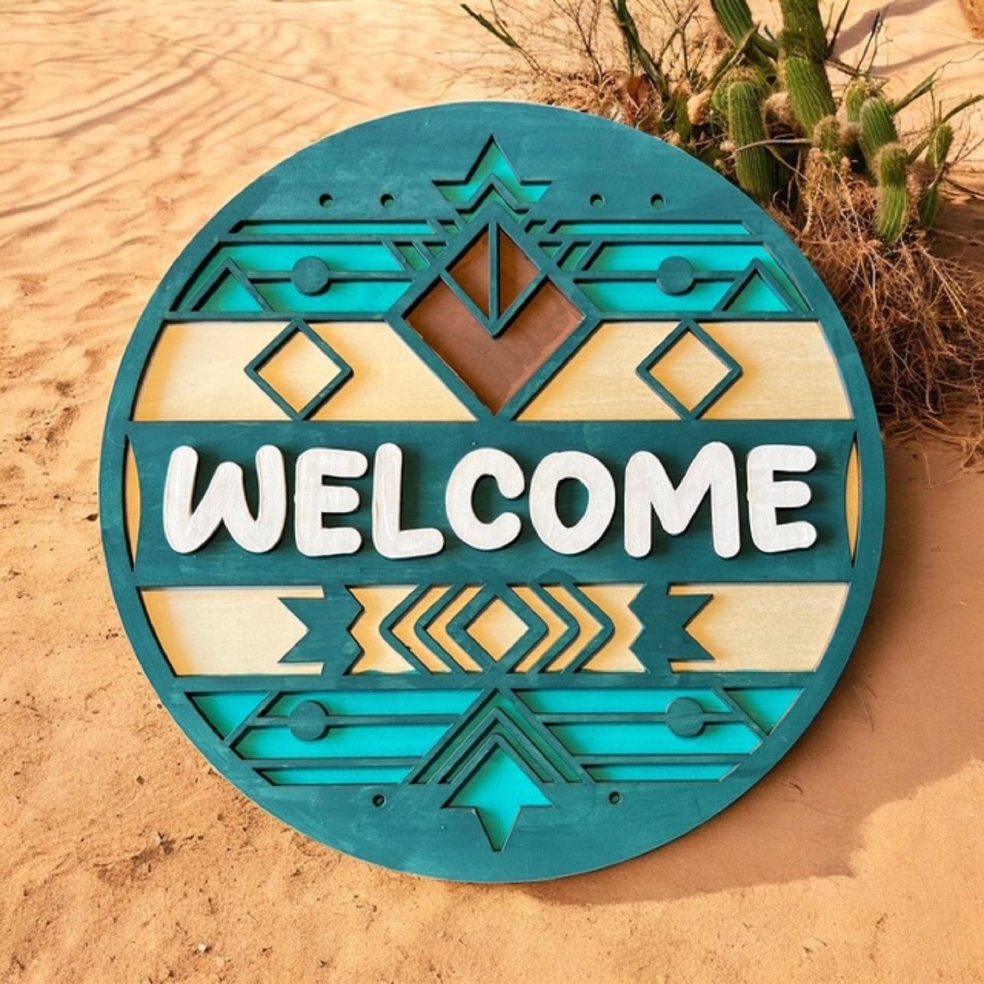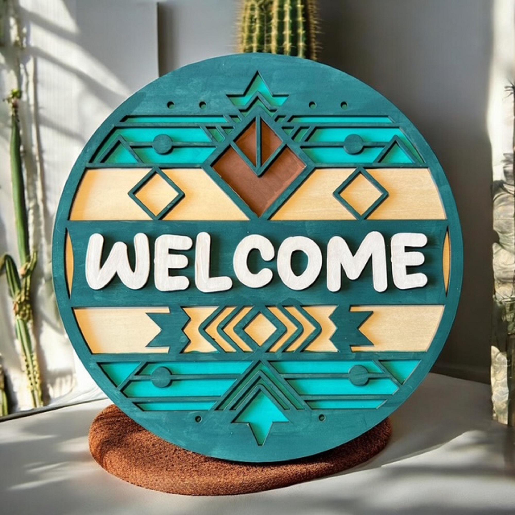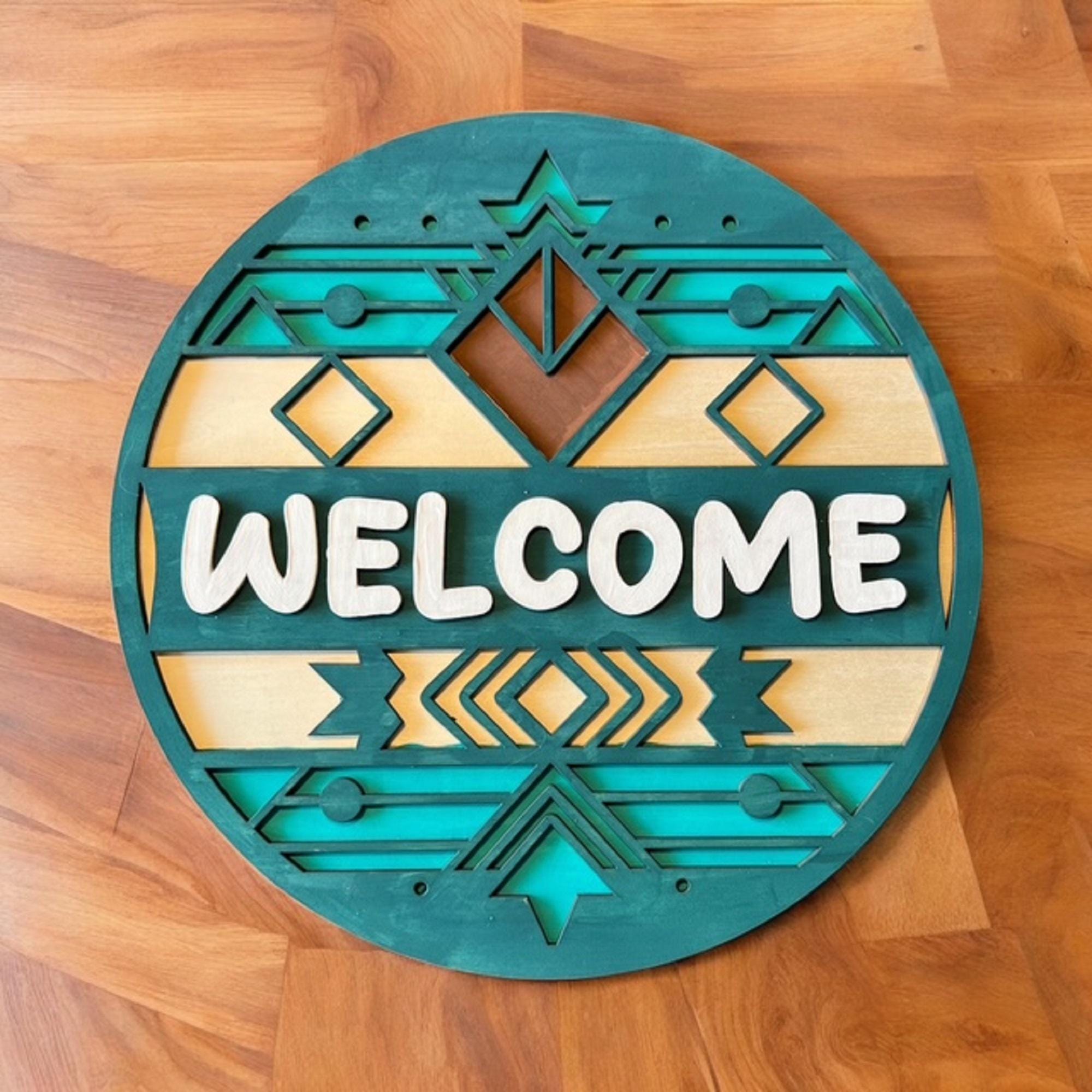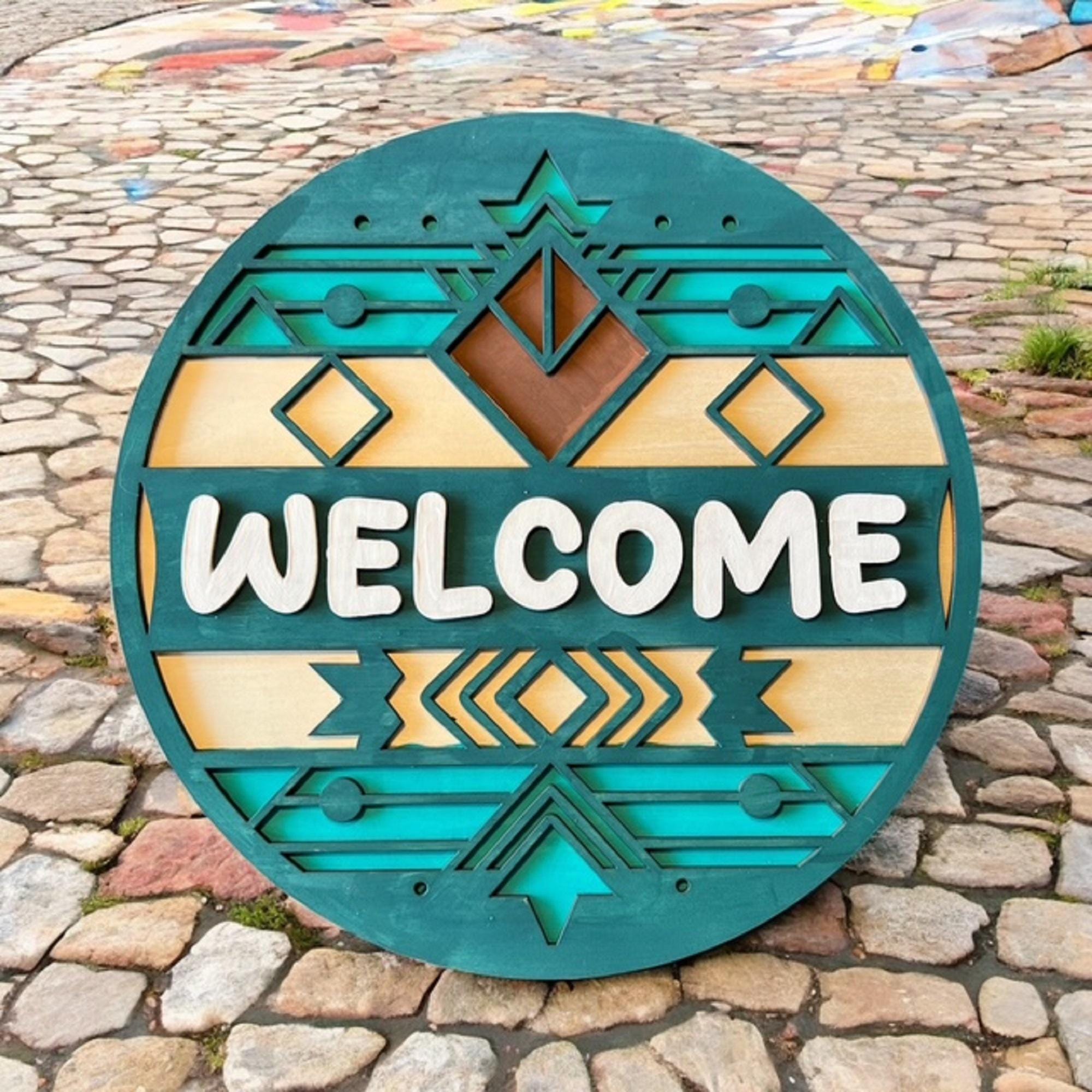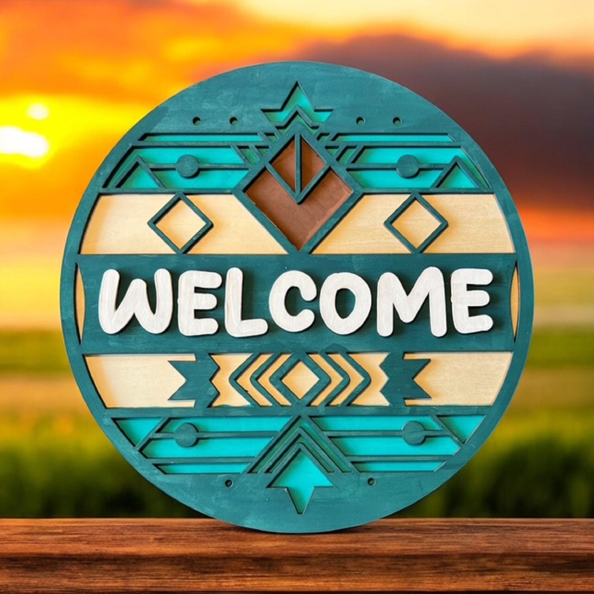 Welcome guests in style with this Southwest welcome door hanger, designed to bring rustic charm and boho vibes to your front porch. Crafted from durable wood and finished with earthy tones, this outdoor hanging decoration stands out as a unique housewarming gift that combines warmth and personality.