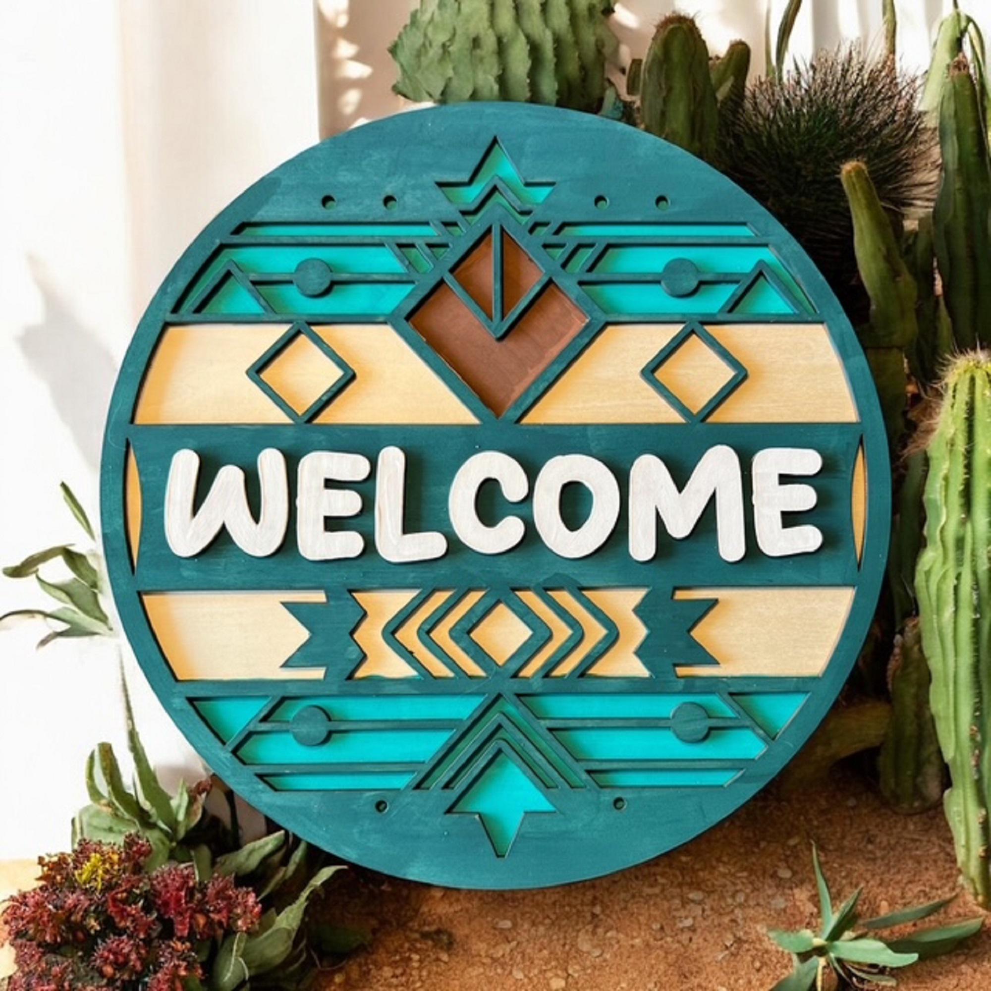 Southwest Welcome Door Hanger: Rustic Boho Porch Decor