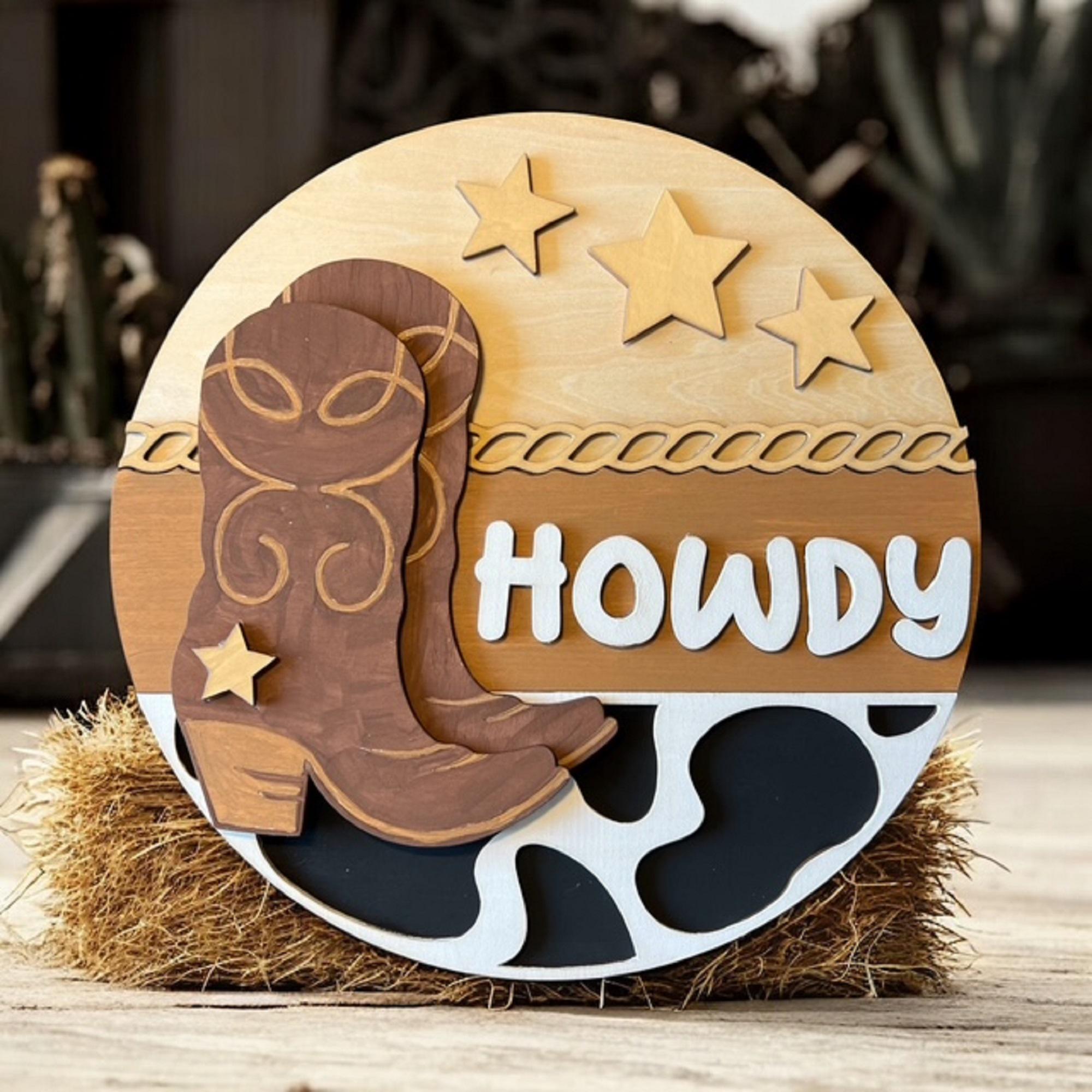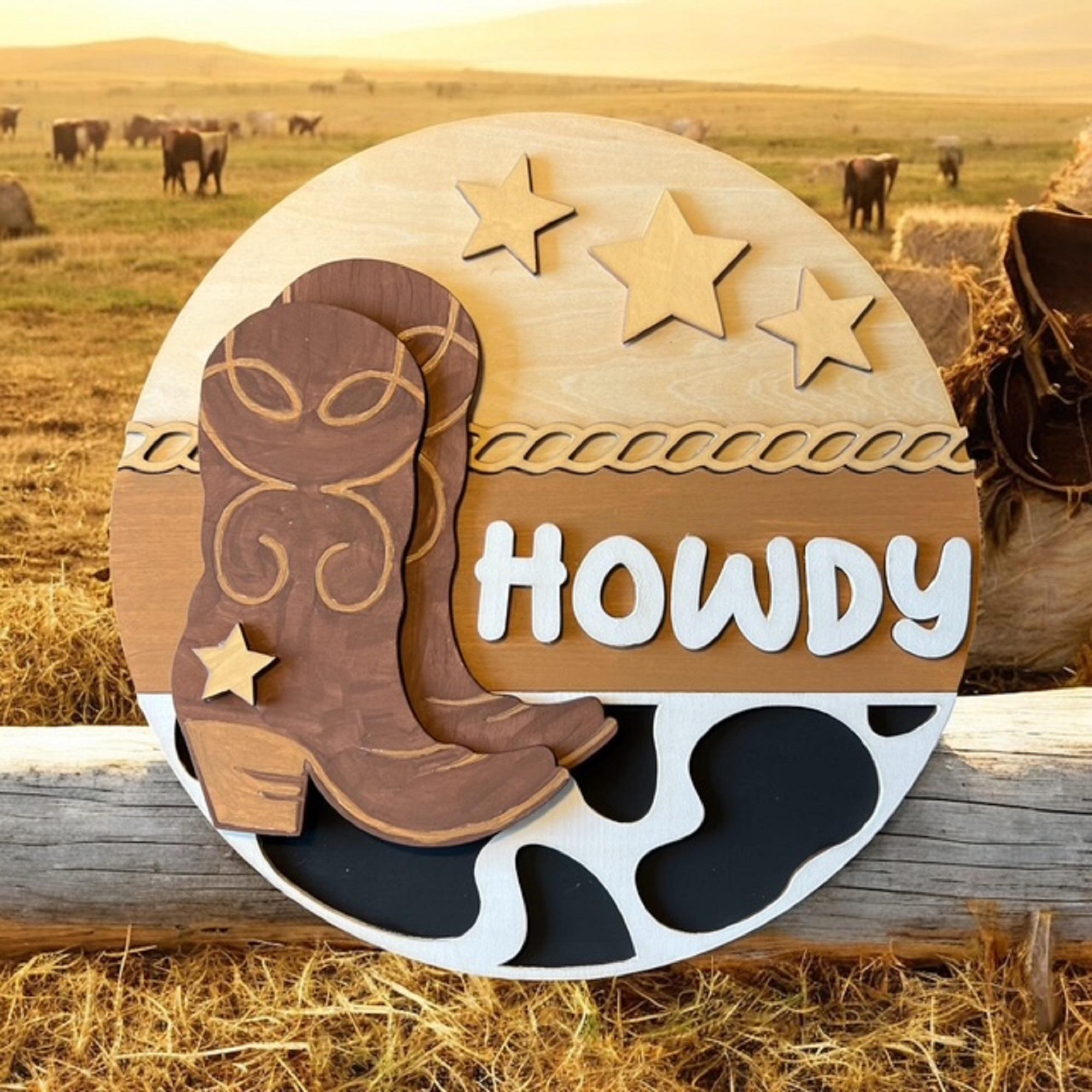 Cowboy Howdy Door Hanger: Rustic Western Farmhouse Decor