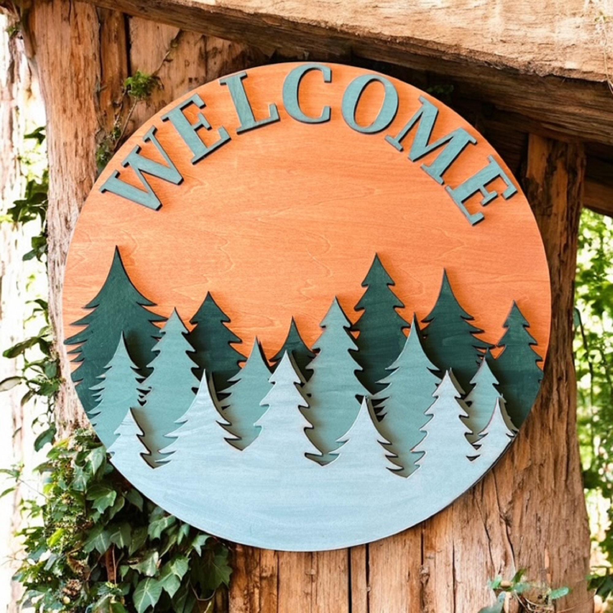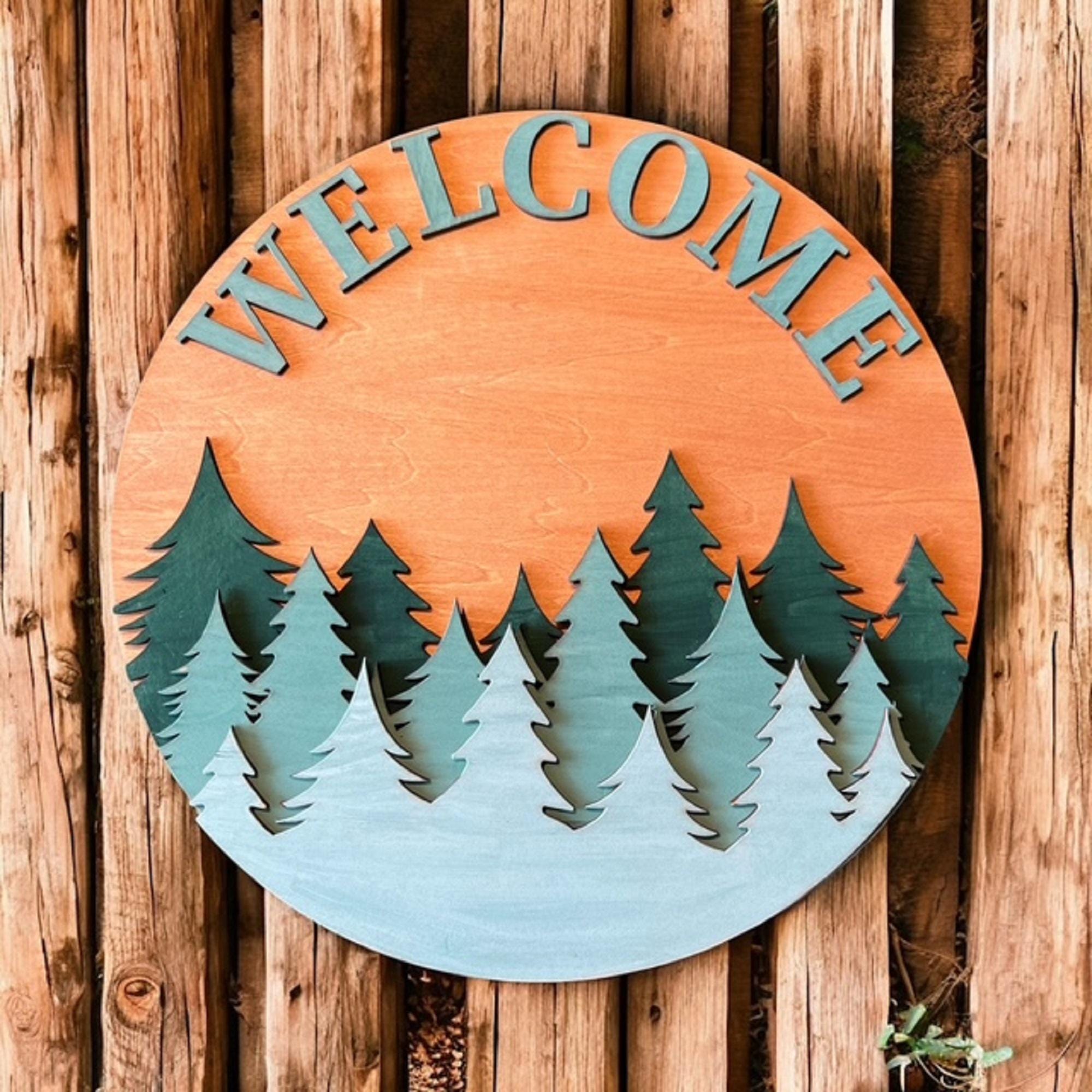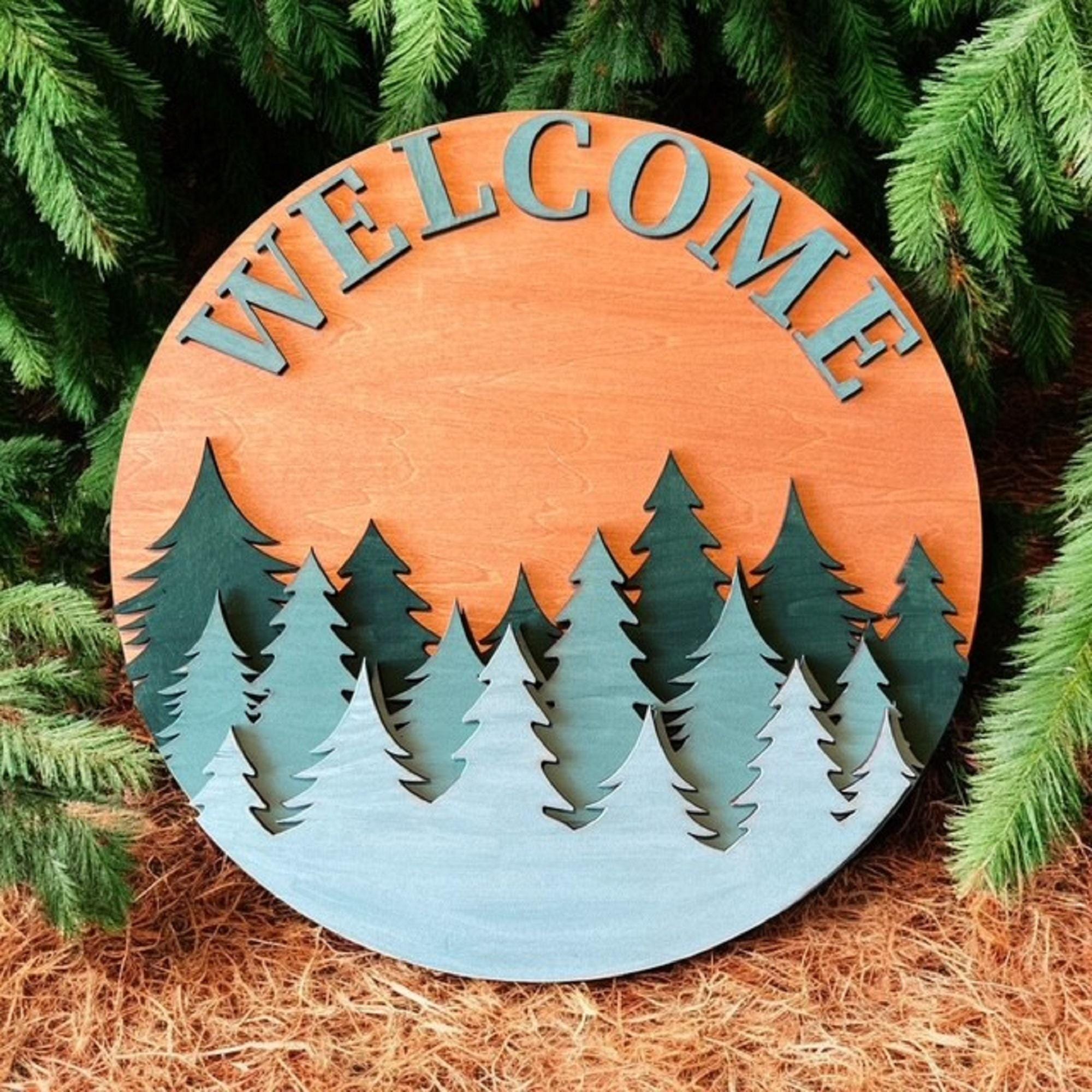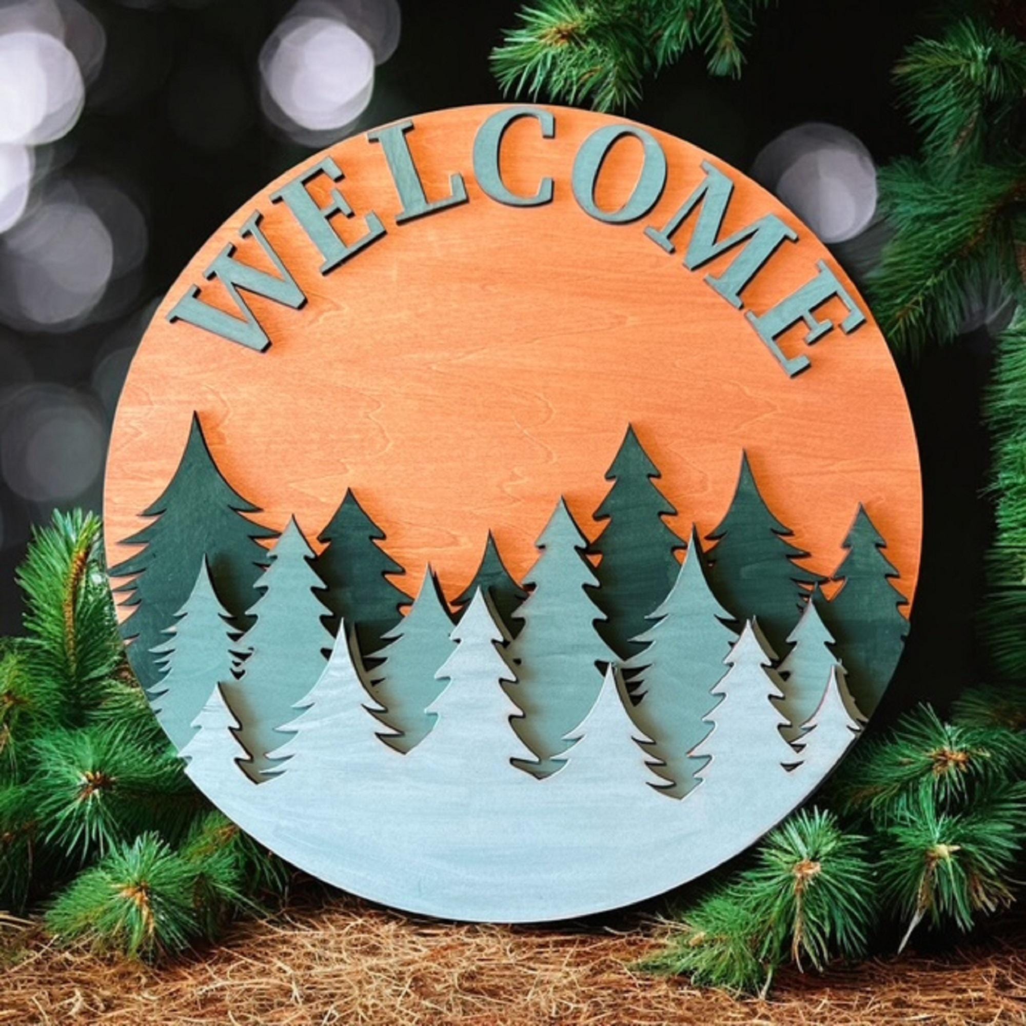 Welcome guests warmly with this handcrafted Layered Pines Welcome Sign, a rustic wooden door décor designed to bring a cozy, inviting touch to your home or cabin entryway. Unlike typical signs, its layered pine design offers depth and texture, making it a distinctive choice for a handmade housewarming gift or seasonal decoration.