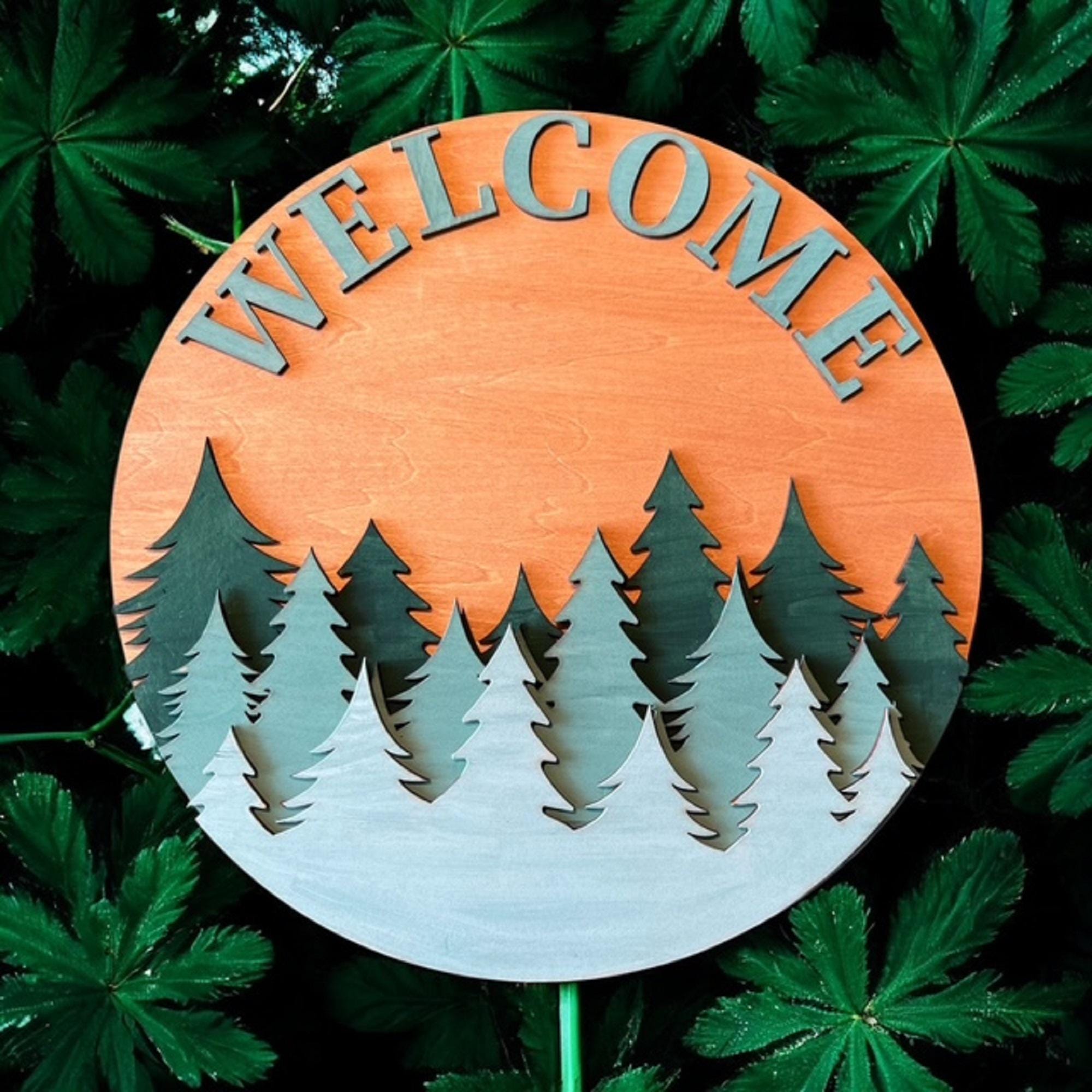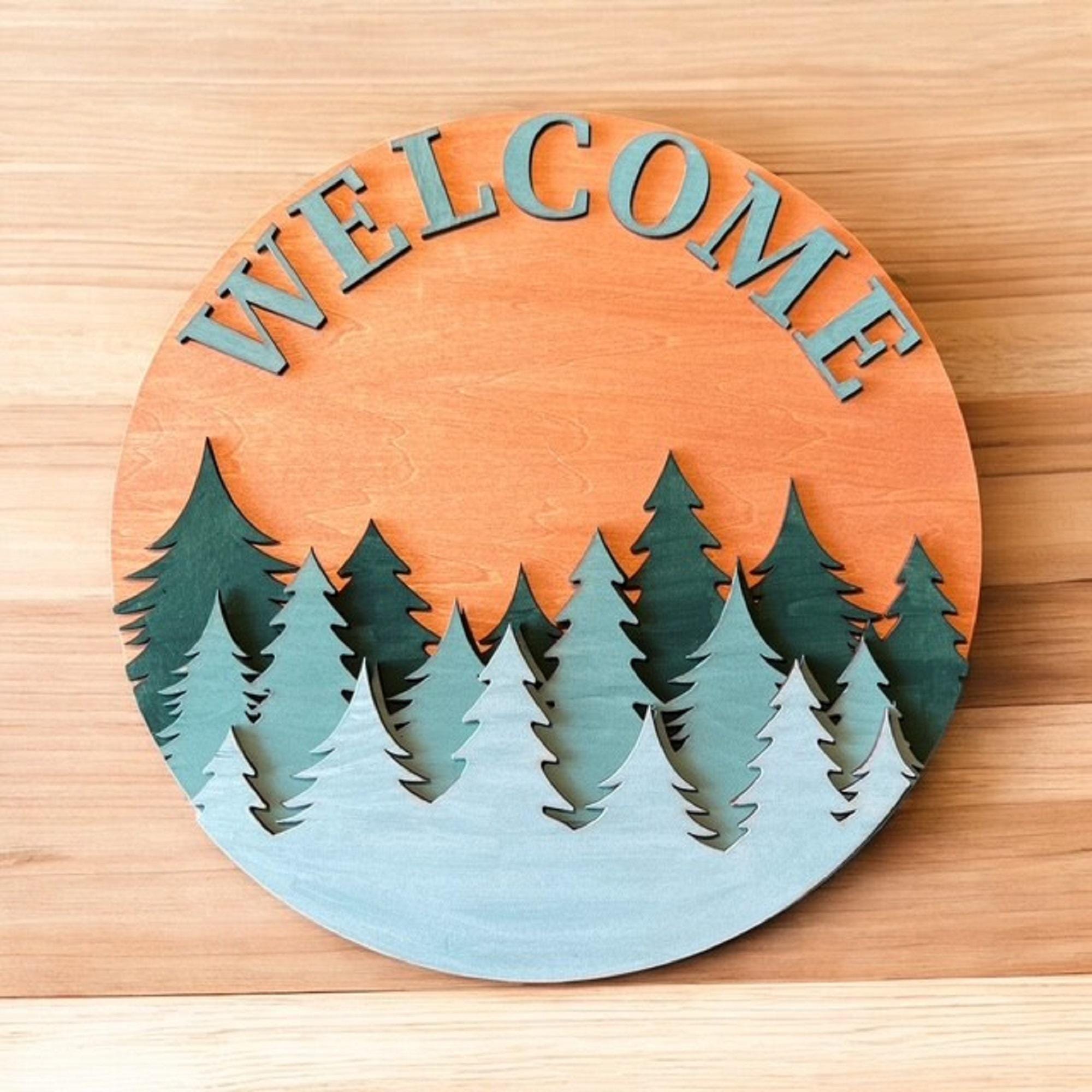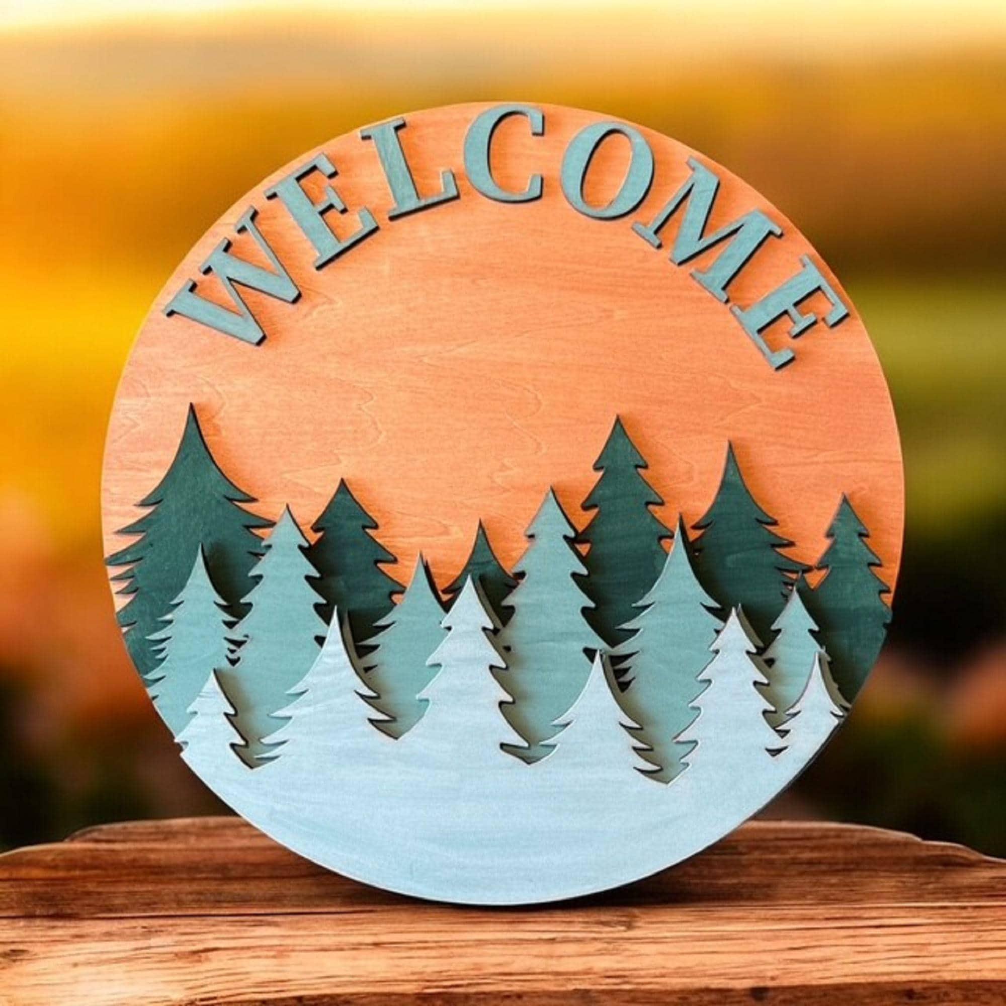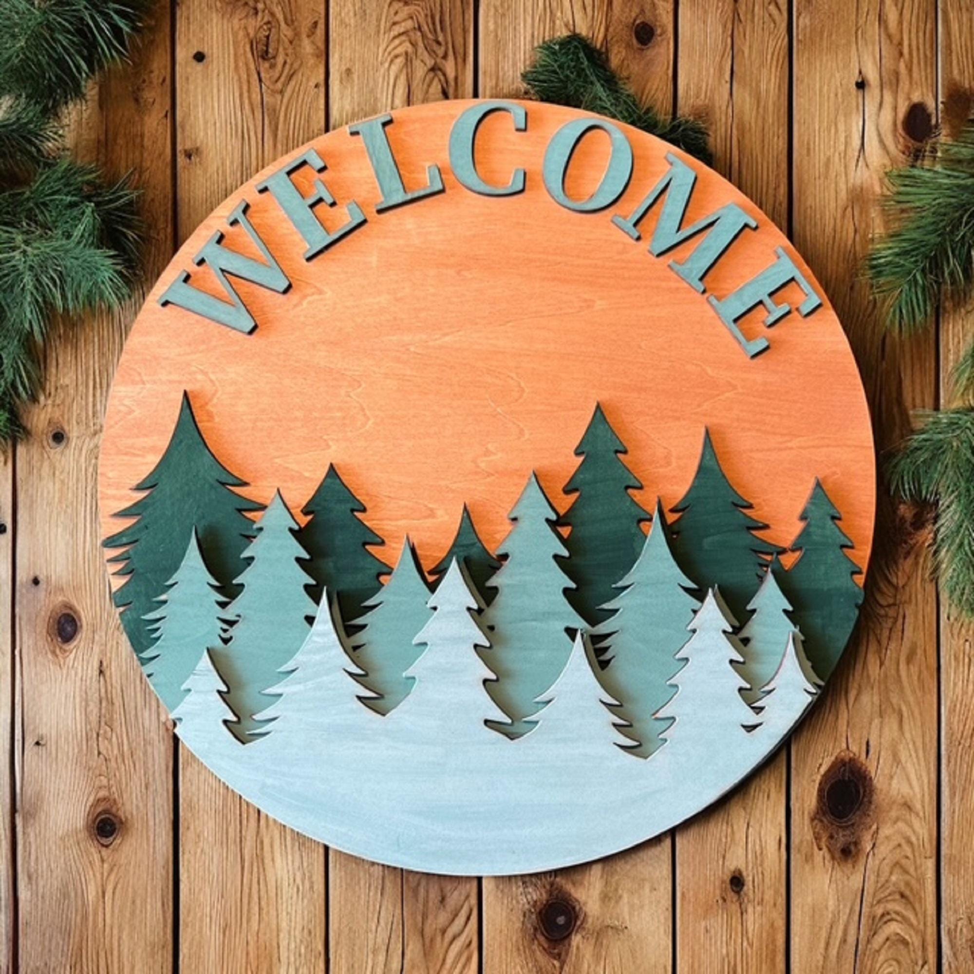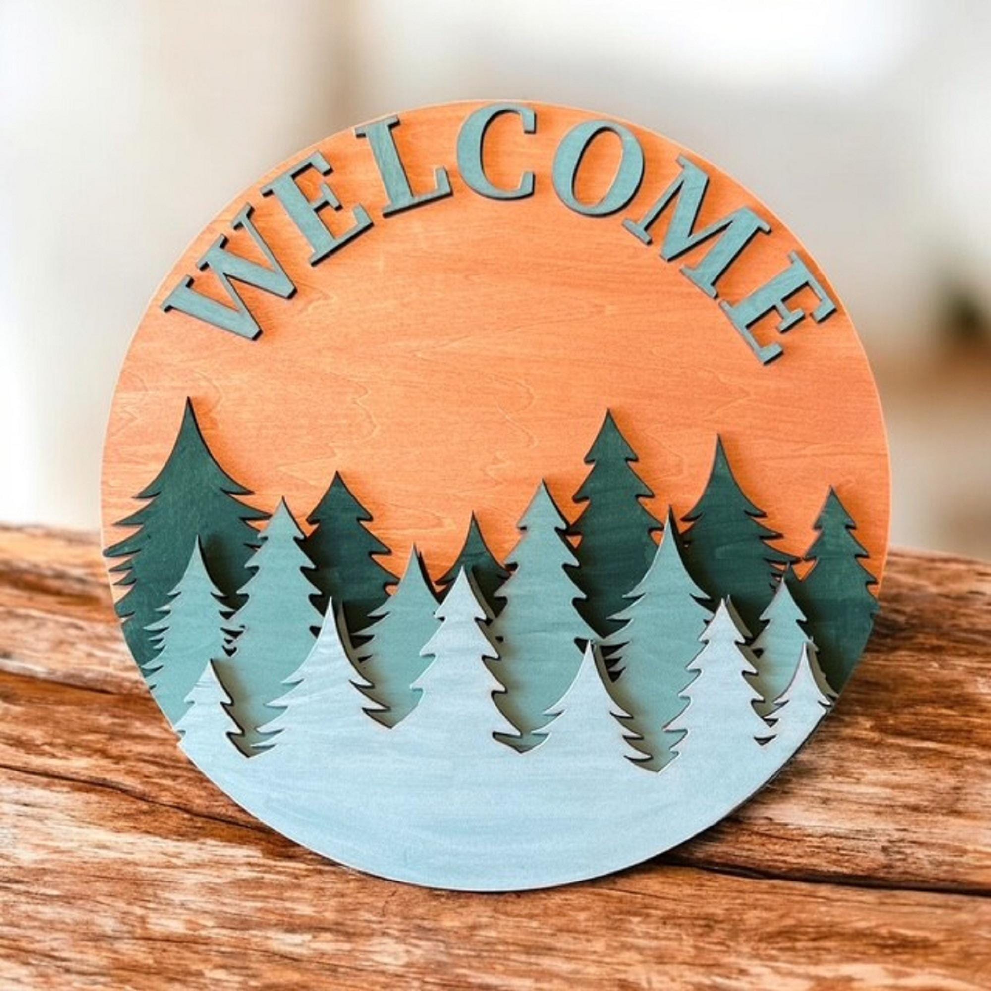 Welcome guests warmly with this handcrafted Layered Pines Welcome Sign, a rustic wooden door décor designed to bring a cozy, inviting touch to your home or cabin entryway. Unlike typical signs, its layered pine design offers depth and texture, making it a distinctive choice for a handmade housewarming gift or seasonal decoration.