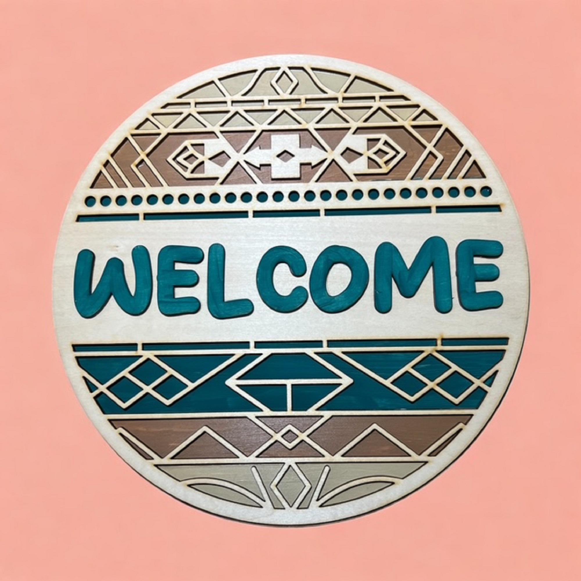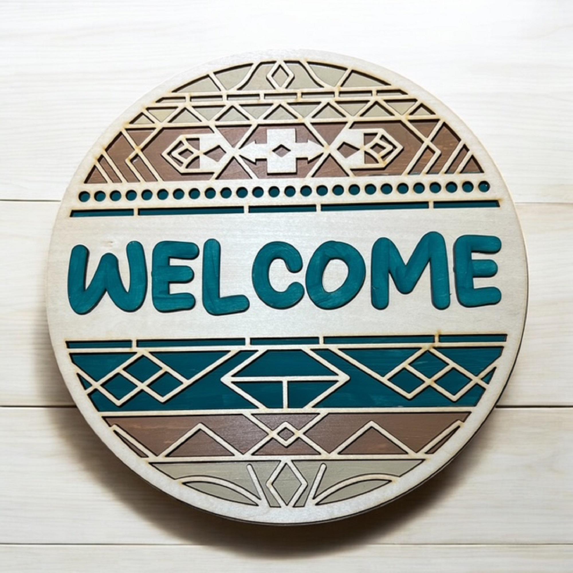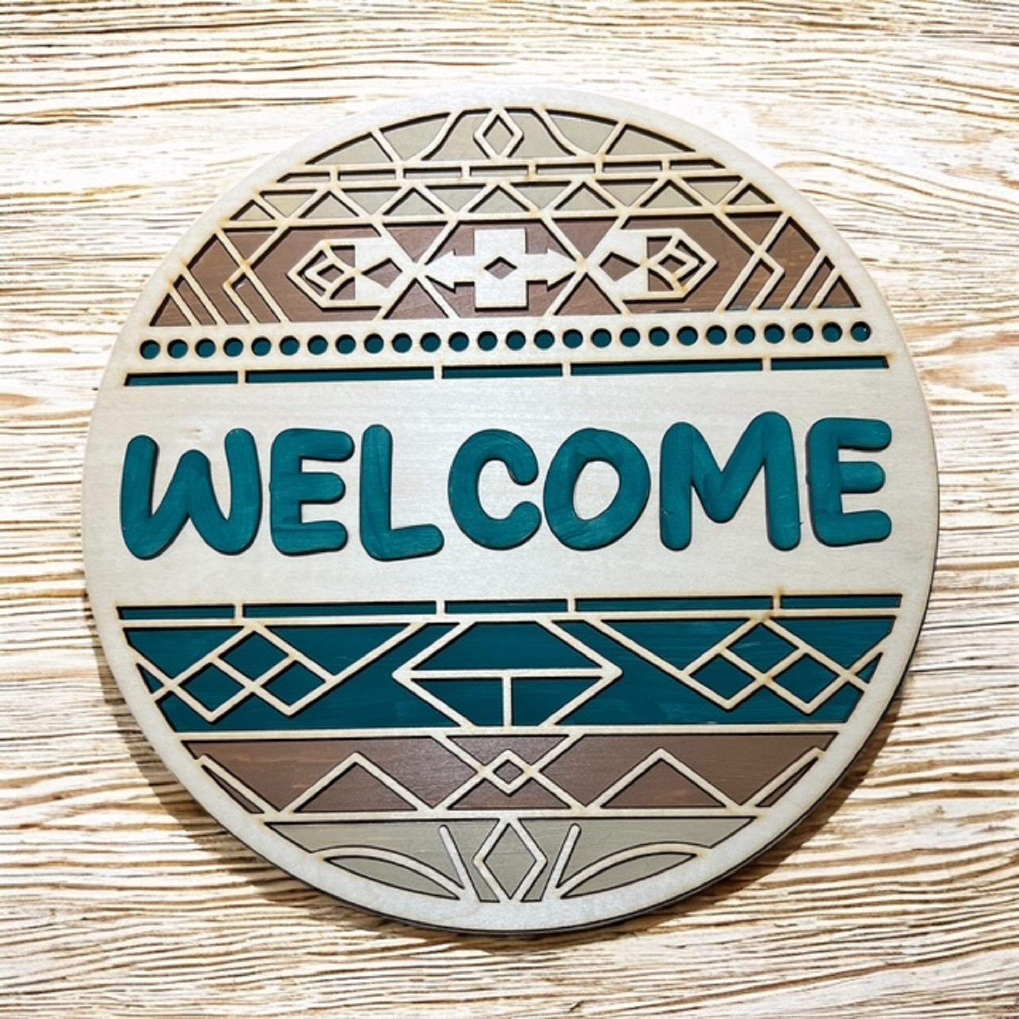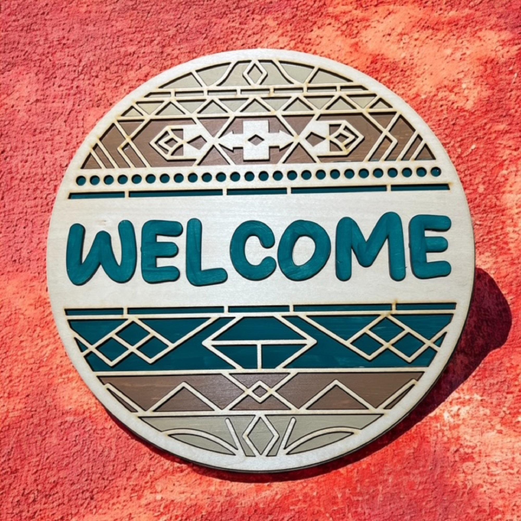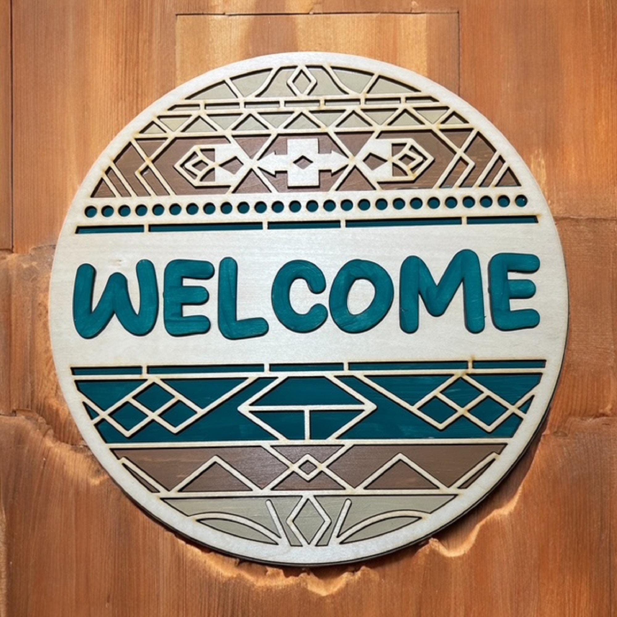 Southwest Welcome Door Hanger: Teal Lettering, Rustic Wood Decor