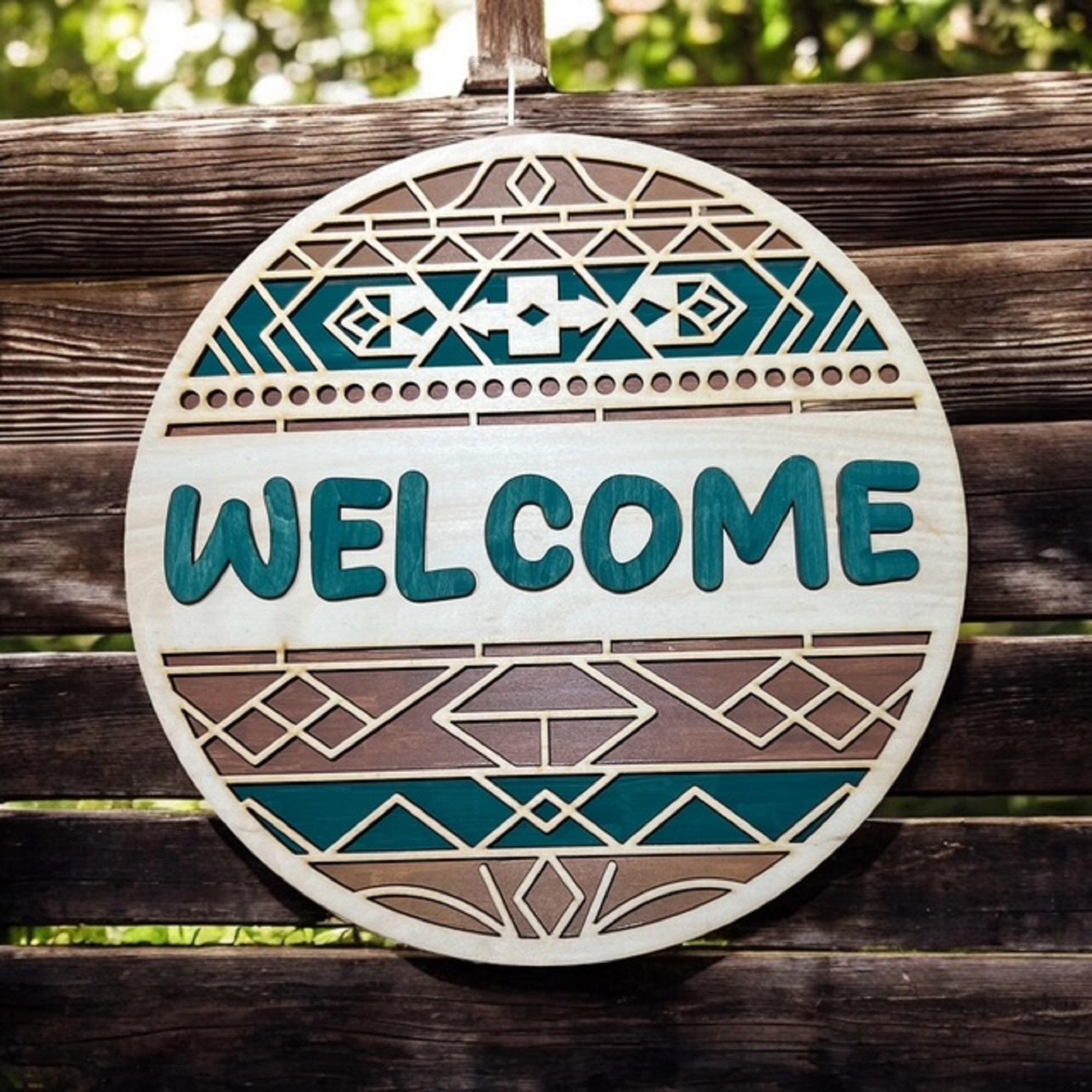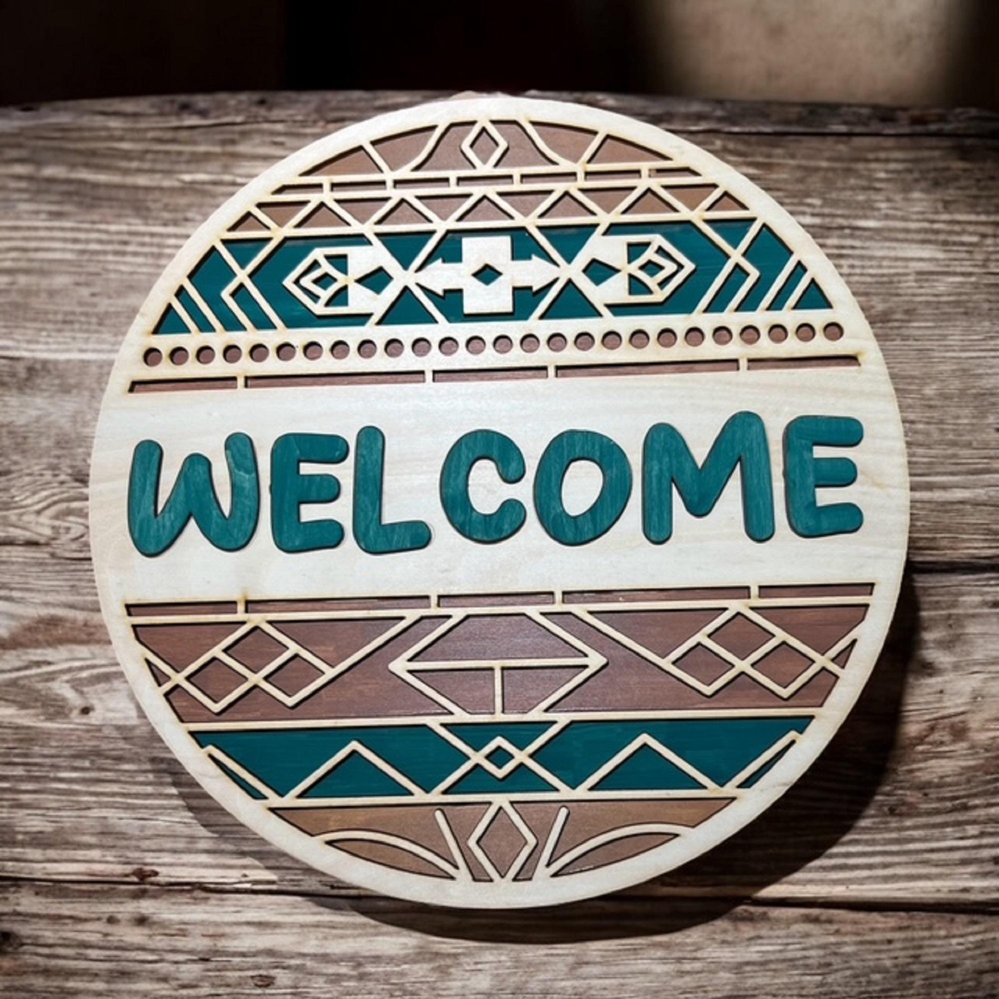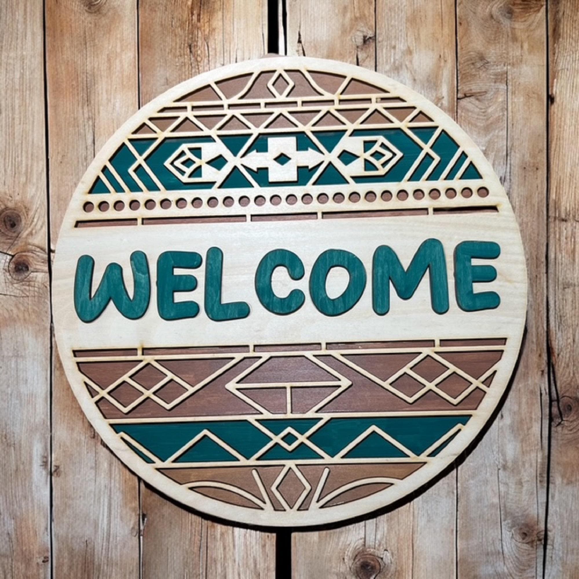 Turquoise Southwest Welcome Sign: Rustic Boho Door Hanger