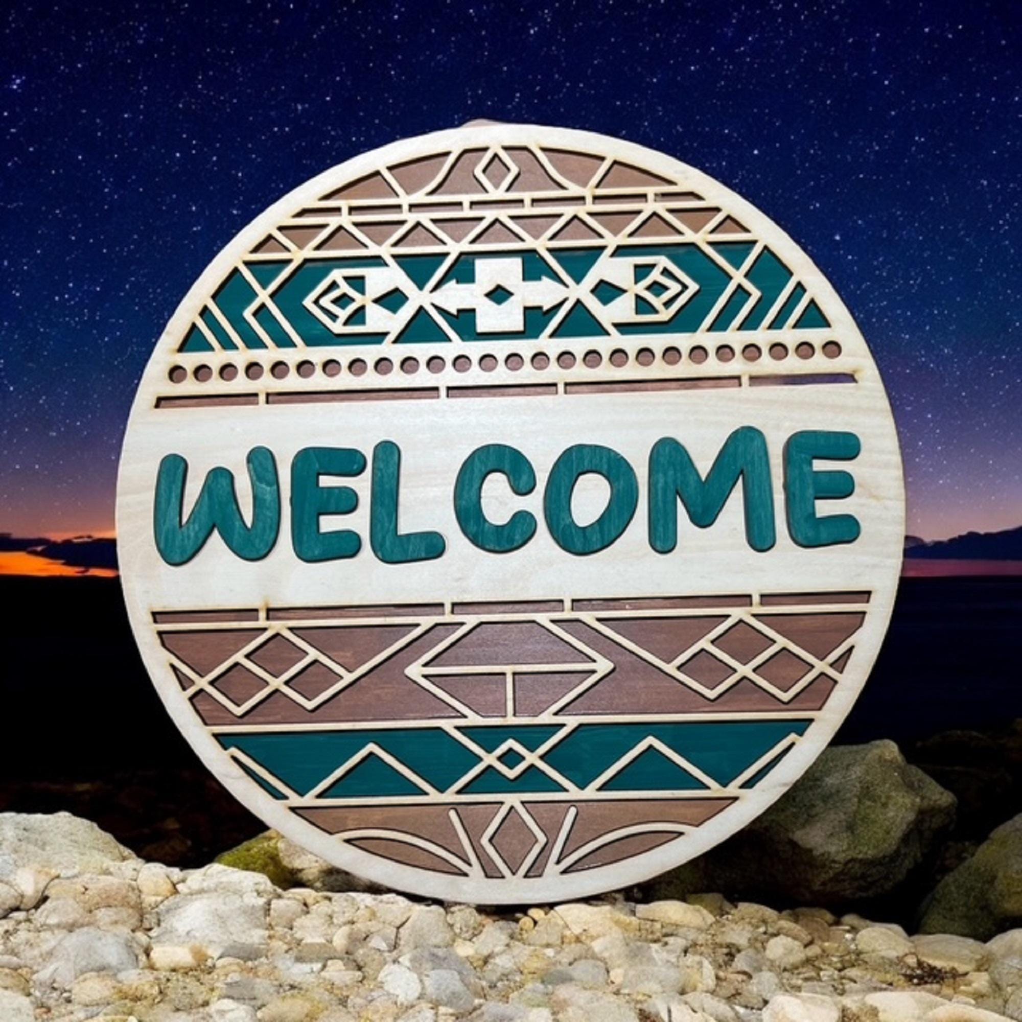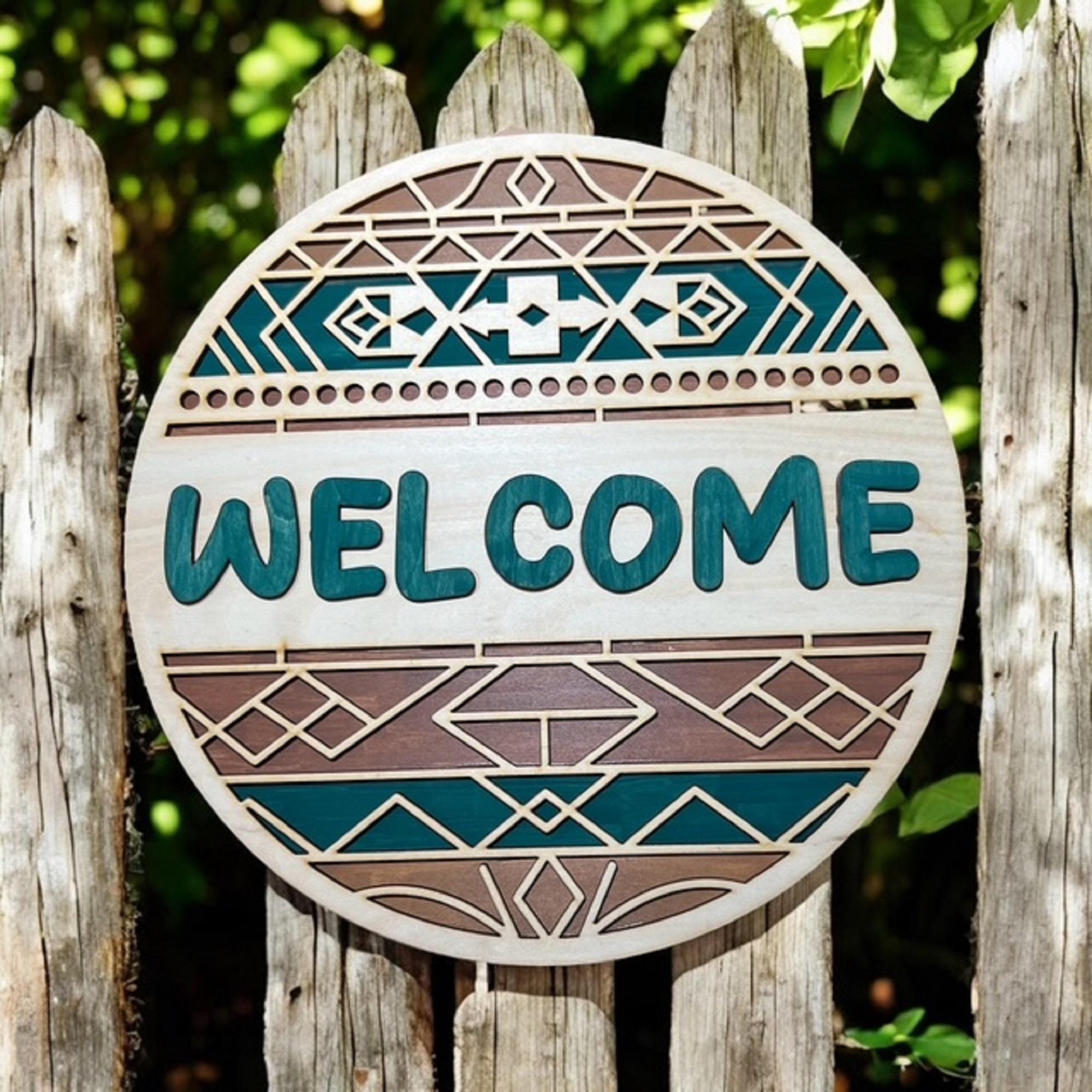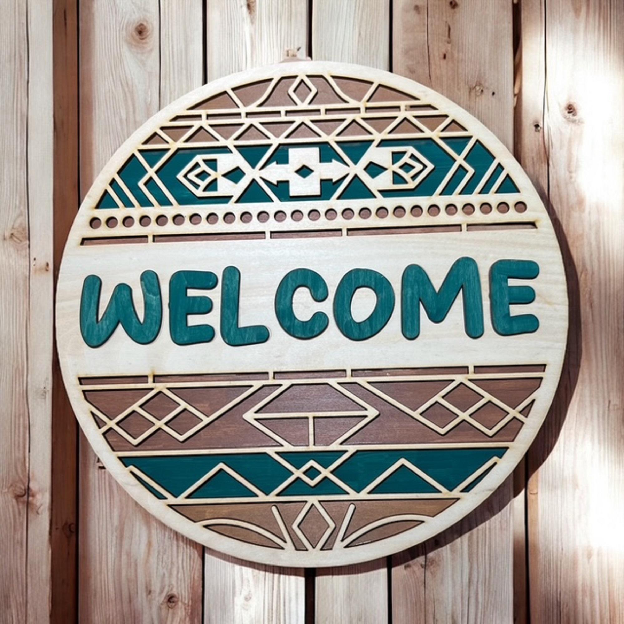 Turquoise Southwest Welcome Sign: Rustic Boho Door Hanger