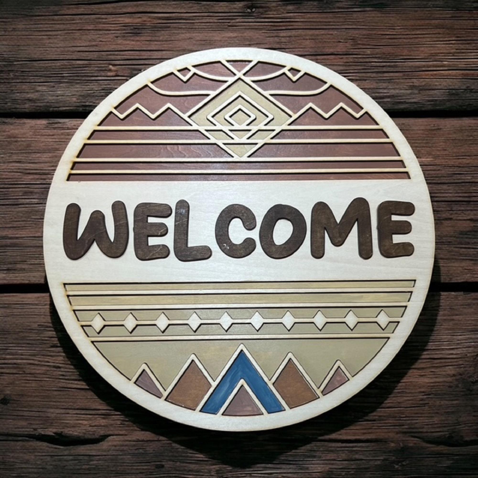 Geometric Mountain Welcome Sign: Rustic Farmhouse Door Hanger