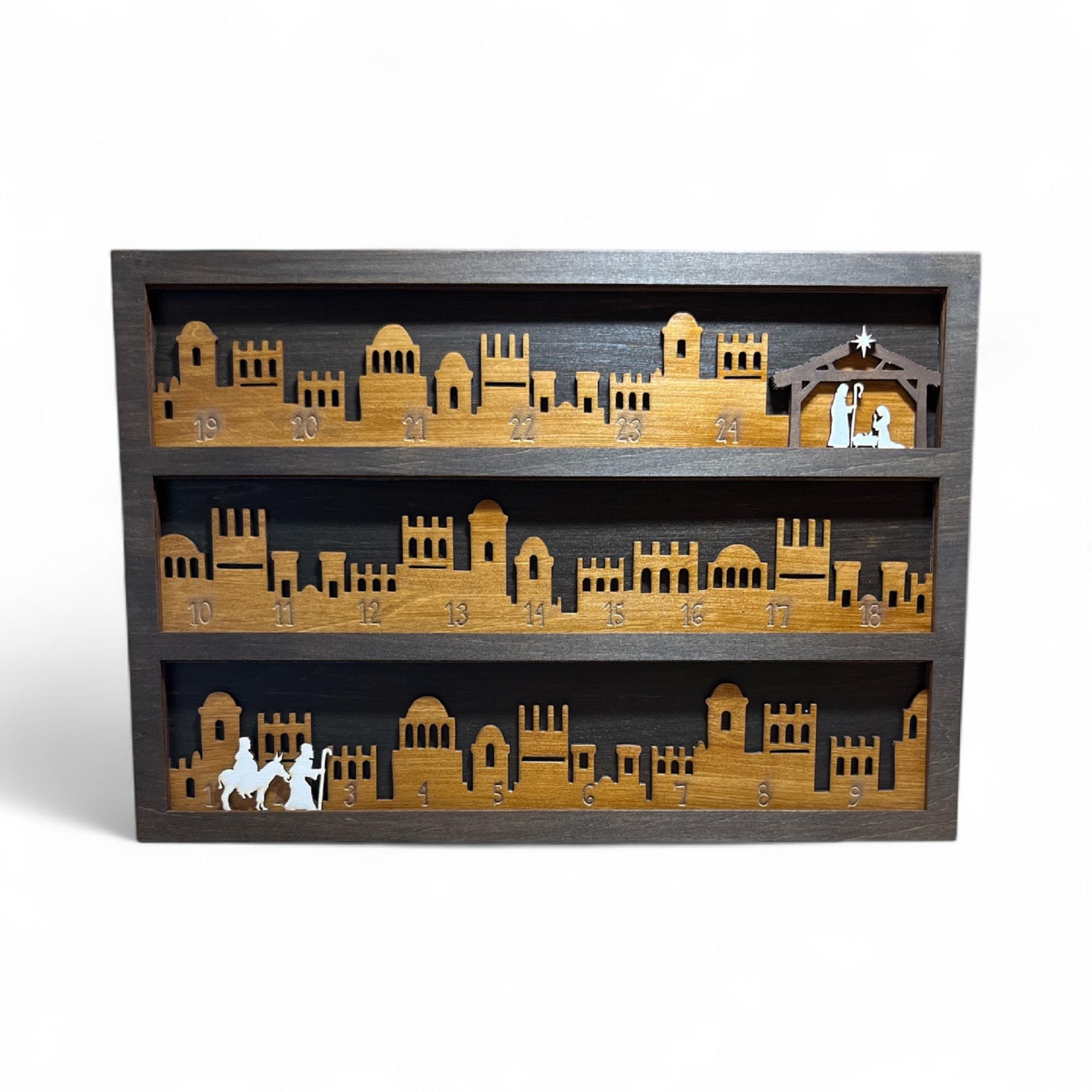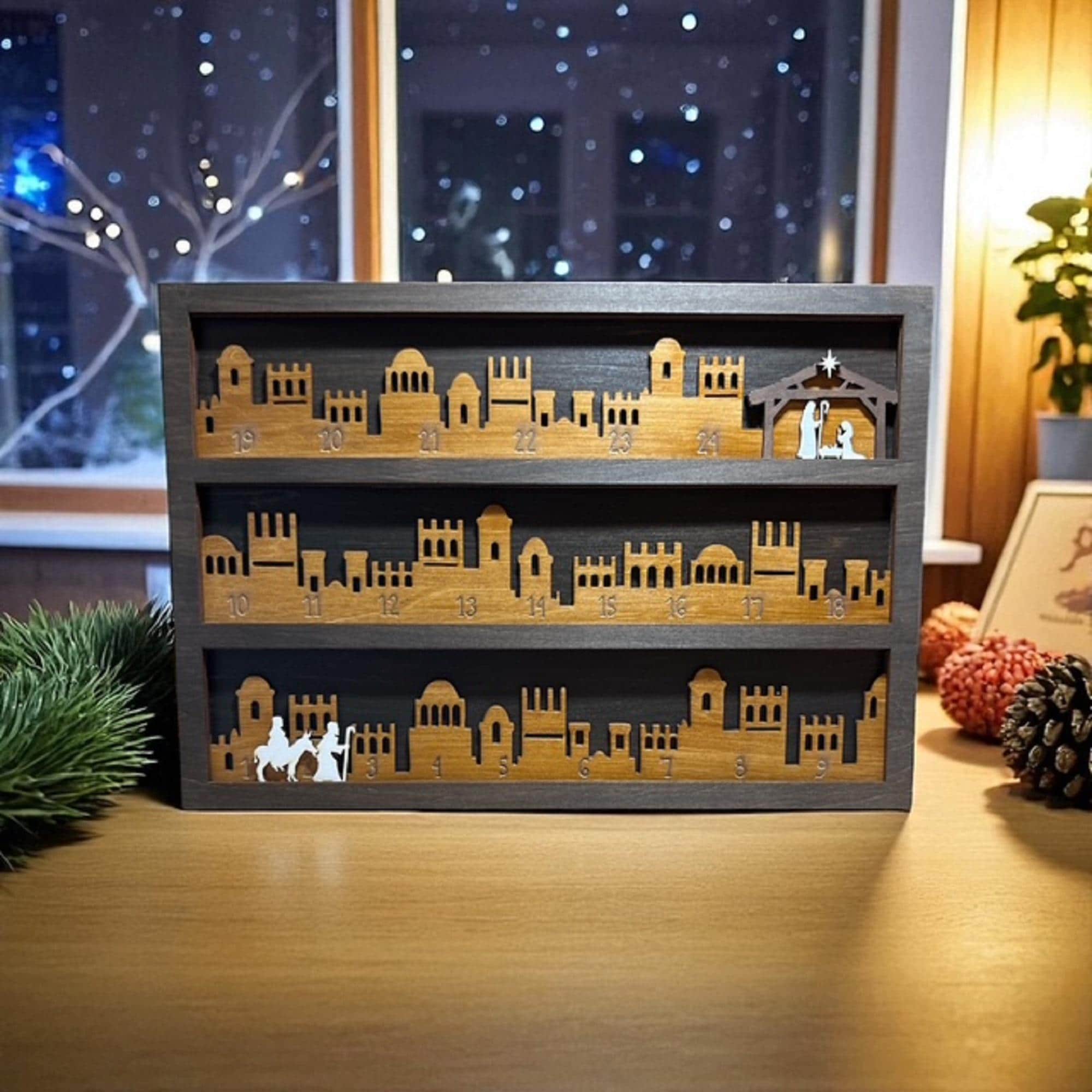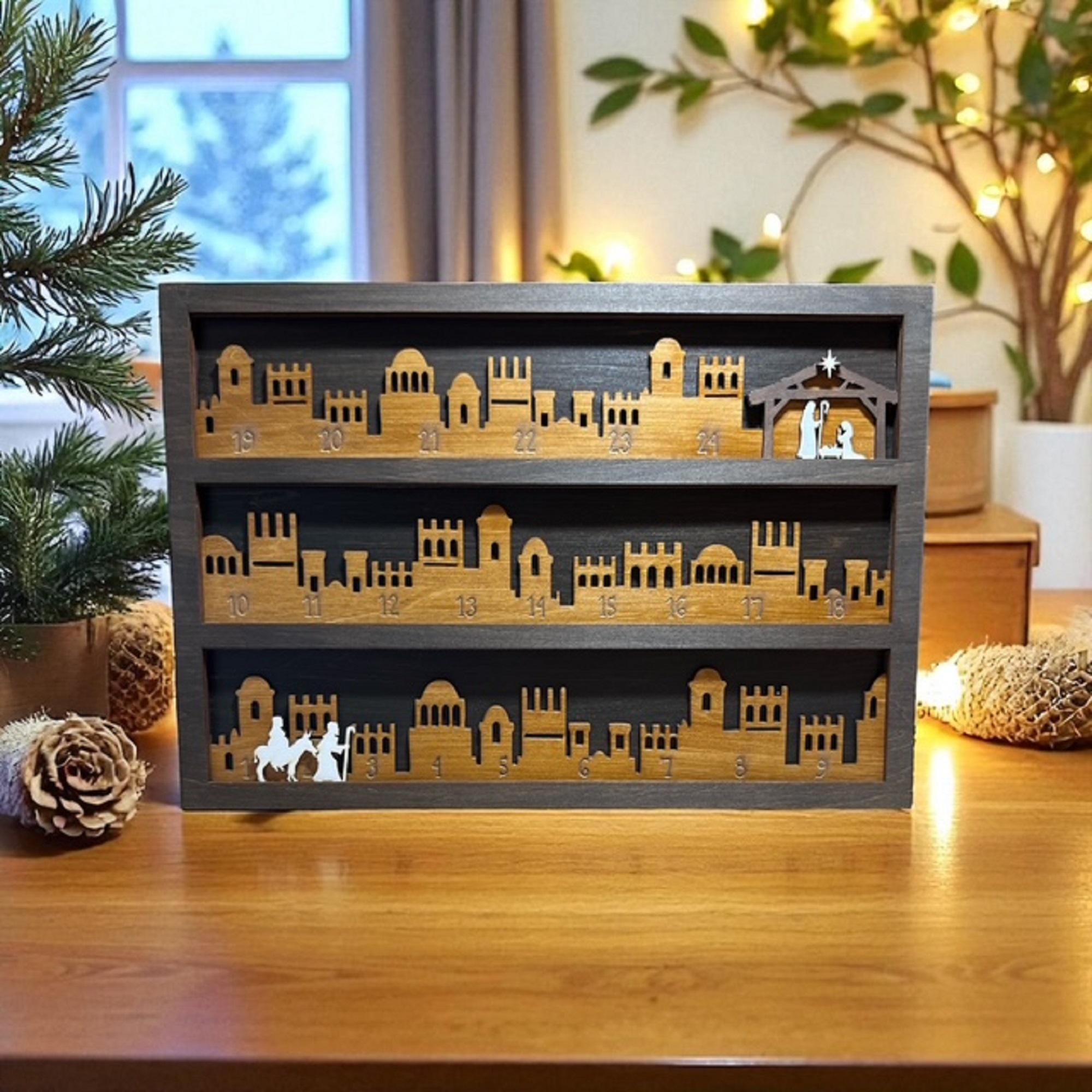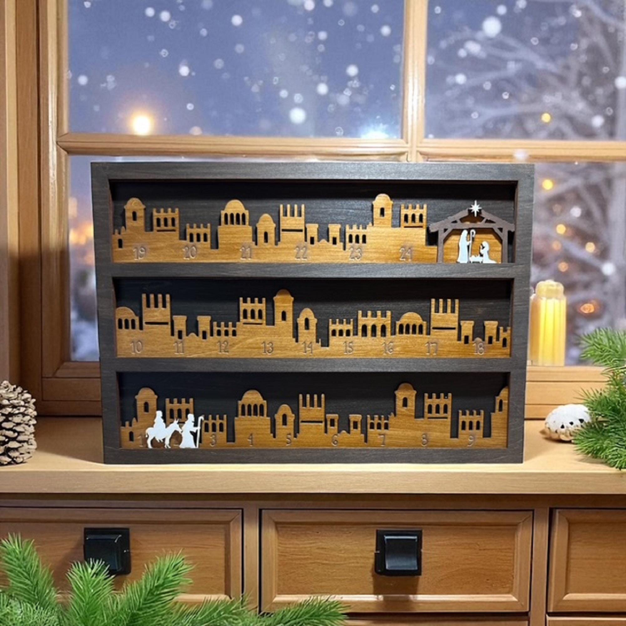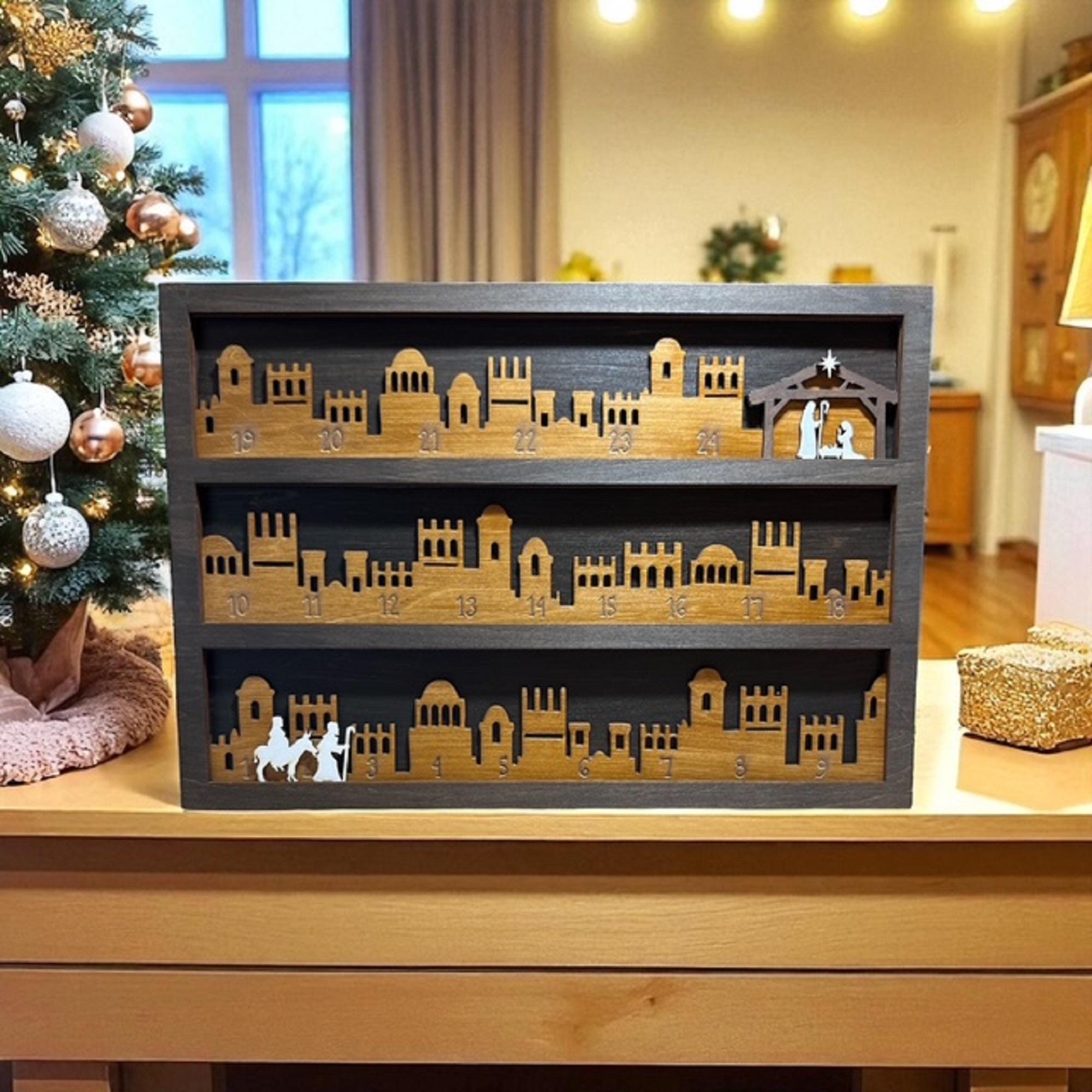 Bethlehem Nativity Advent Calendar: Wooden Christmas Countdown Décor