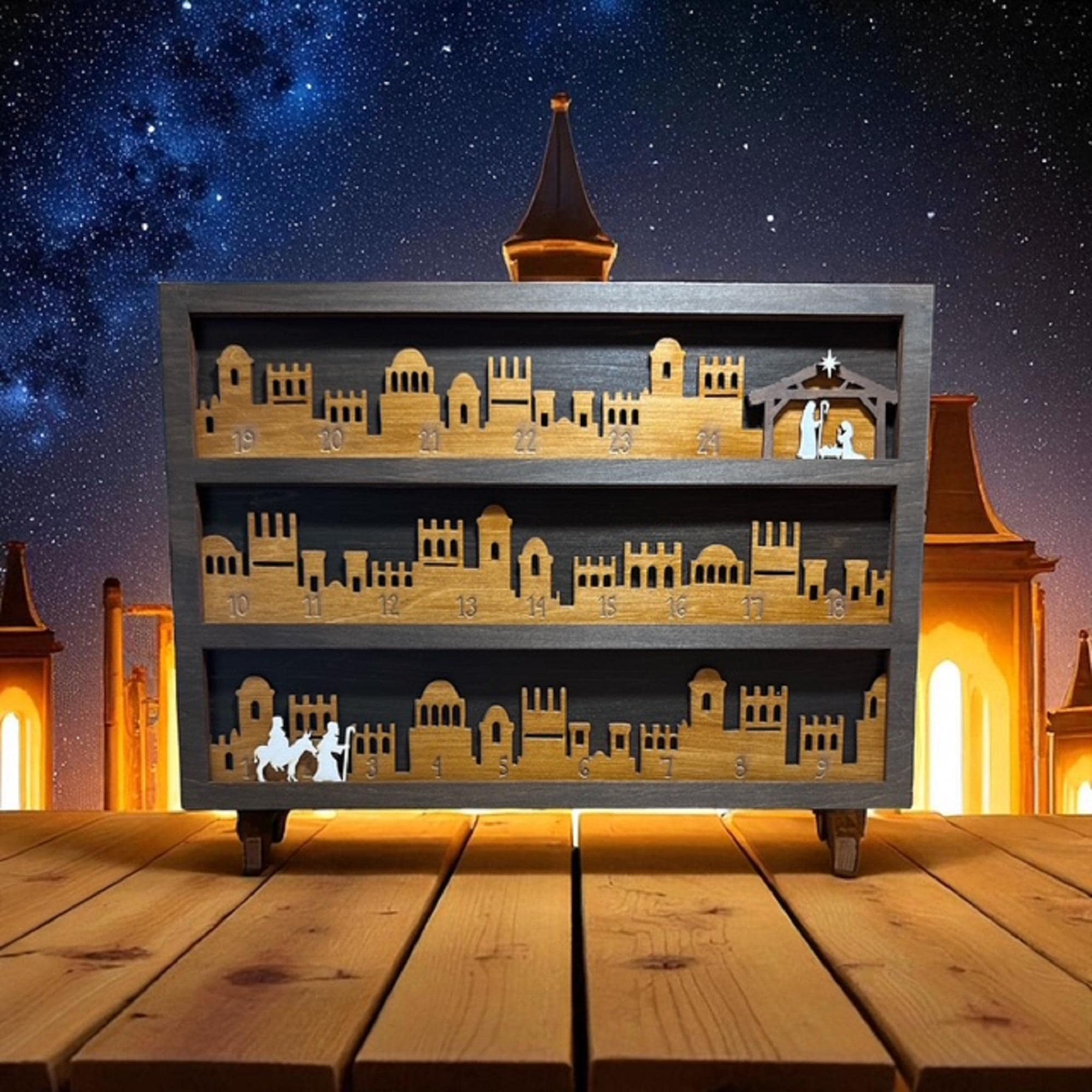 Bring the historic and spiritual essence of Christmas to your home with this Bethlehem Countdown Calendar—an elegant way to celebrate the season and reflect on the true meaning of Christmas. Perfect for holiday décor, religious celebrations, or as a heartfelt gift for loved ones.