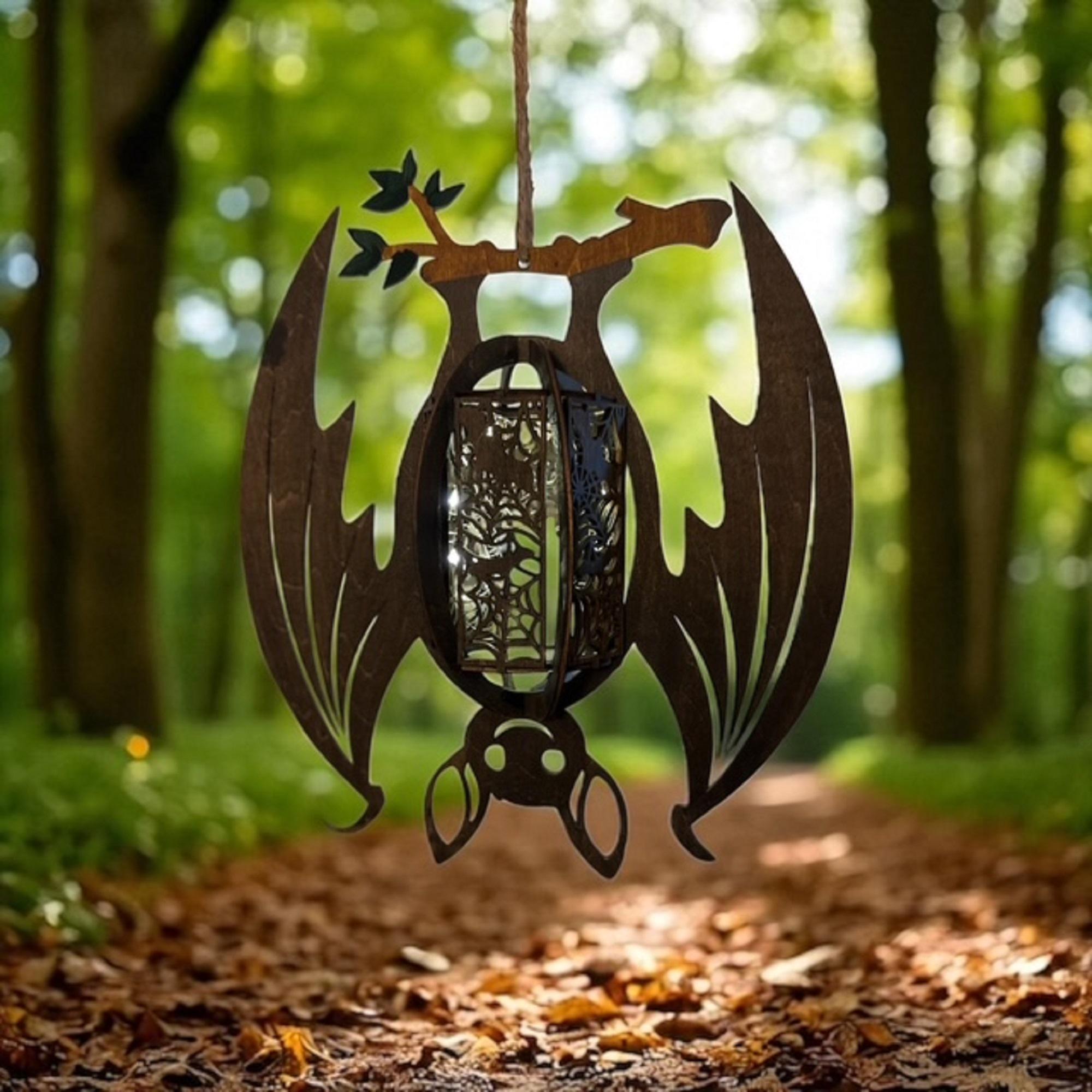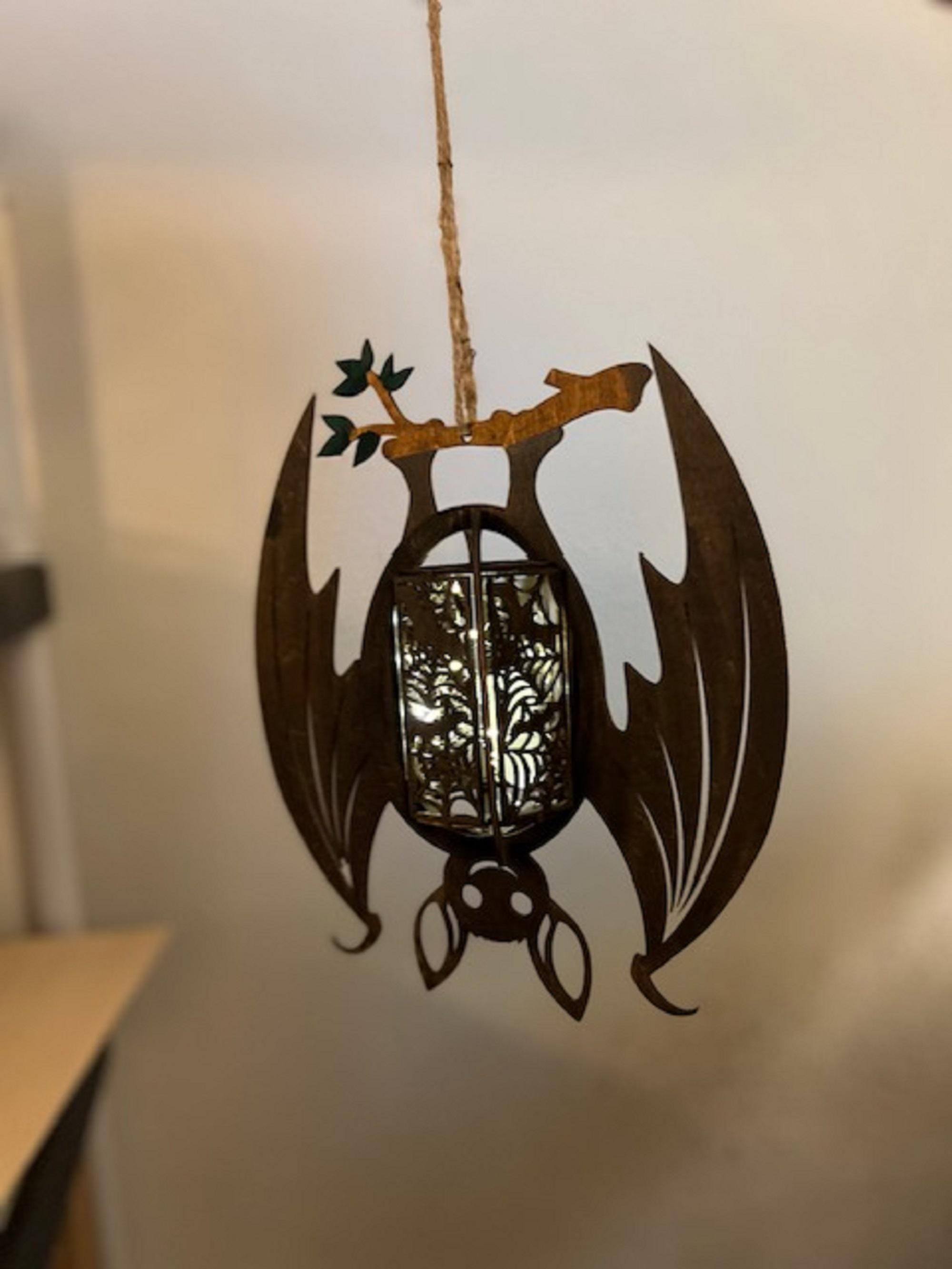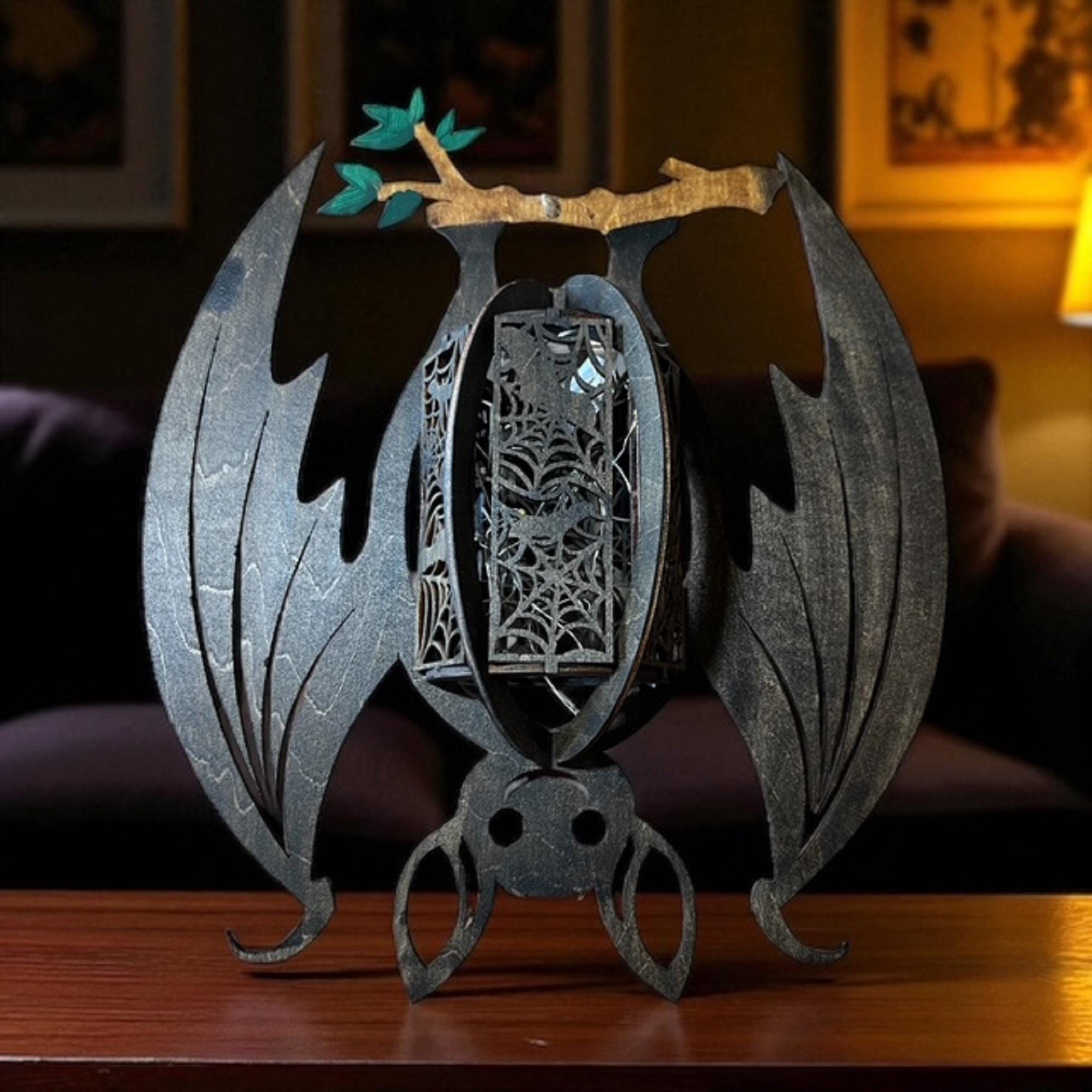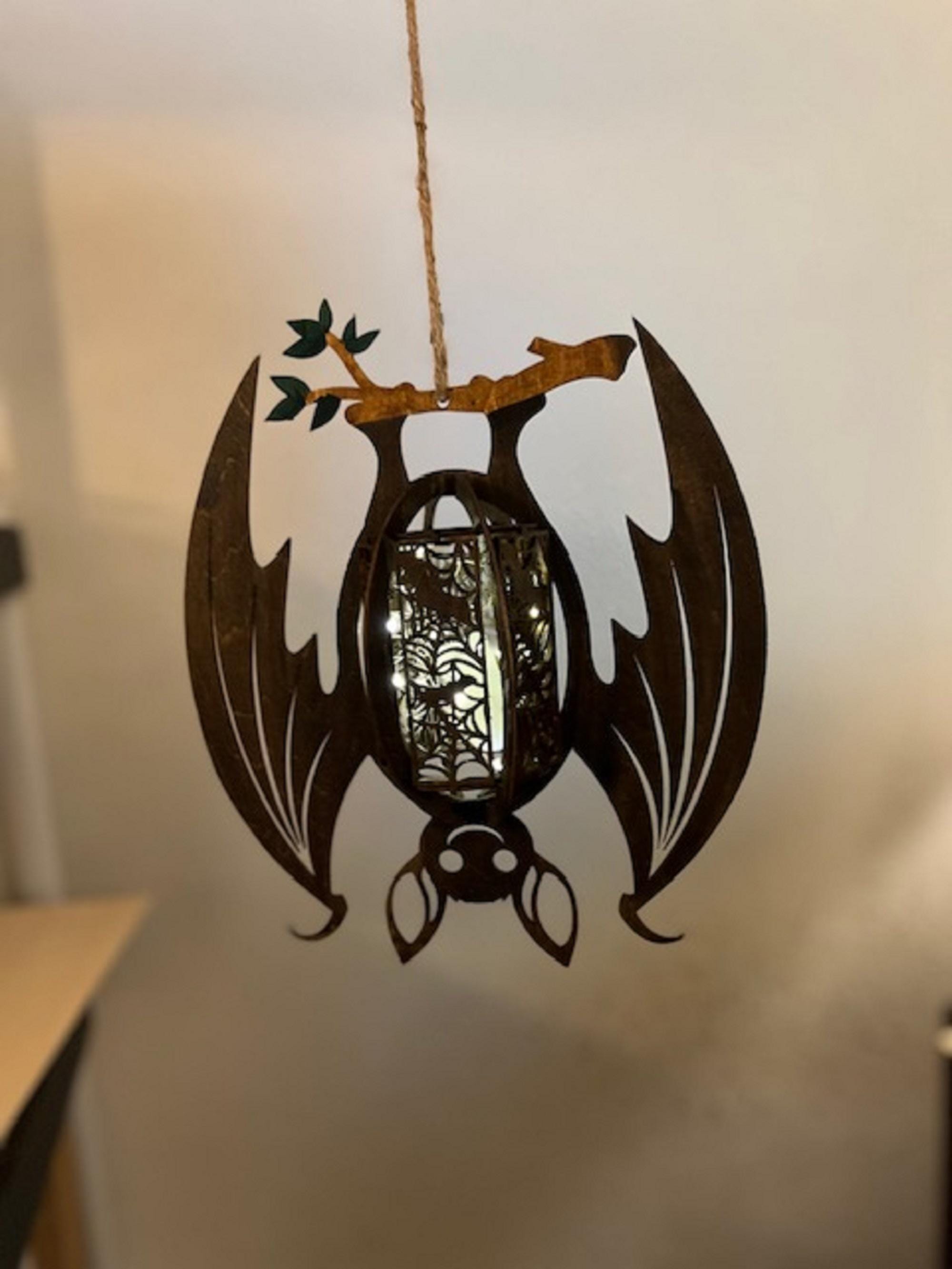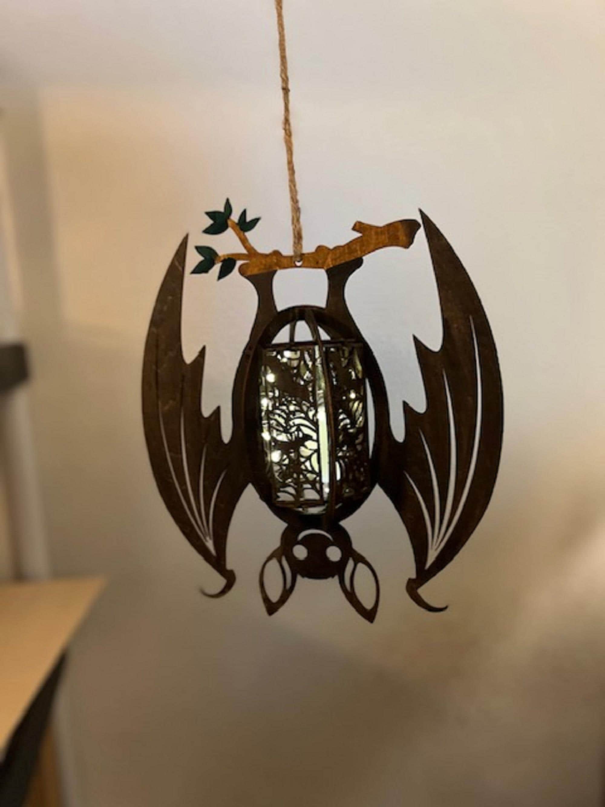 Laser Cut Wooden Bat Lantern with Fairy Lights - Halloween Decor