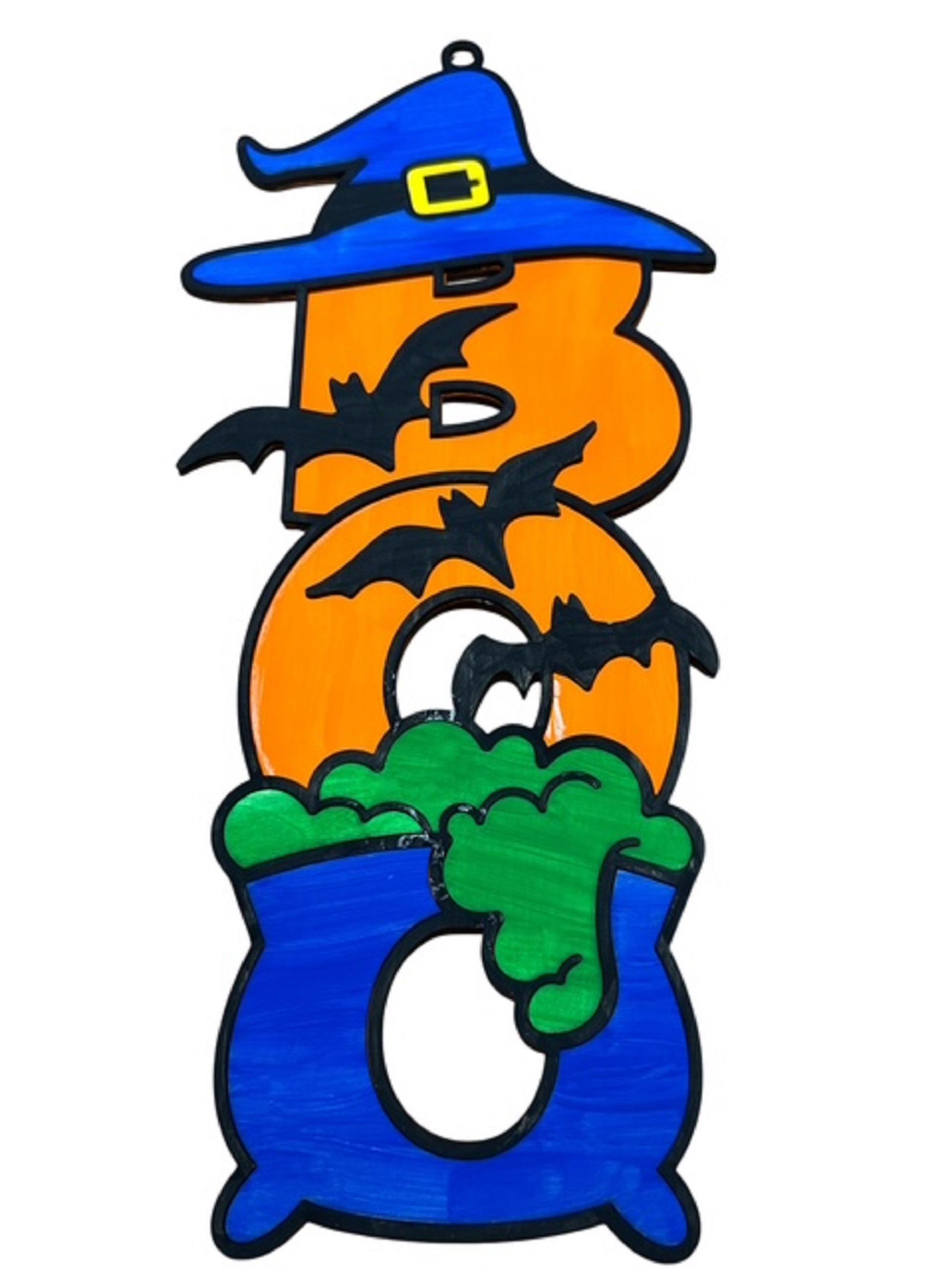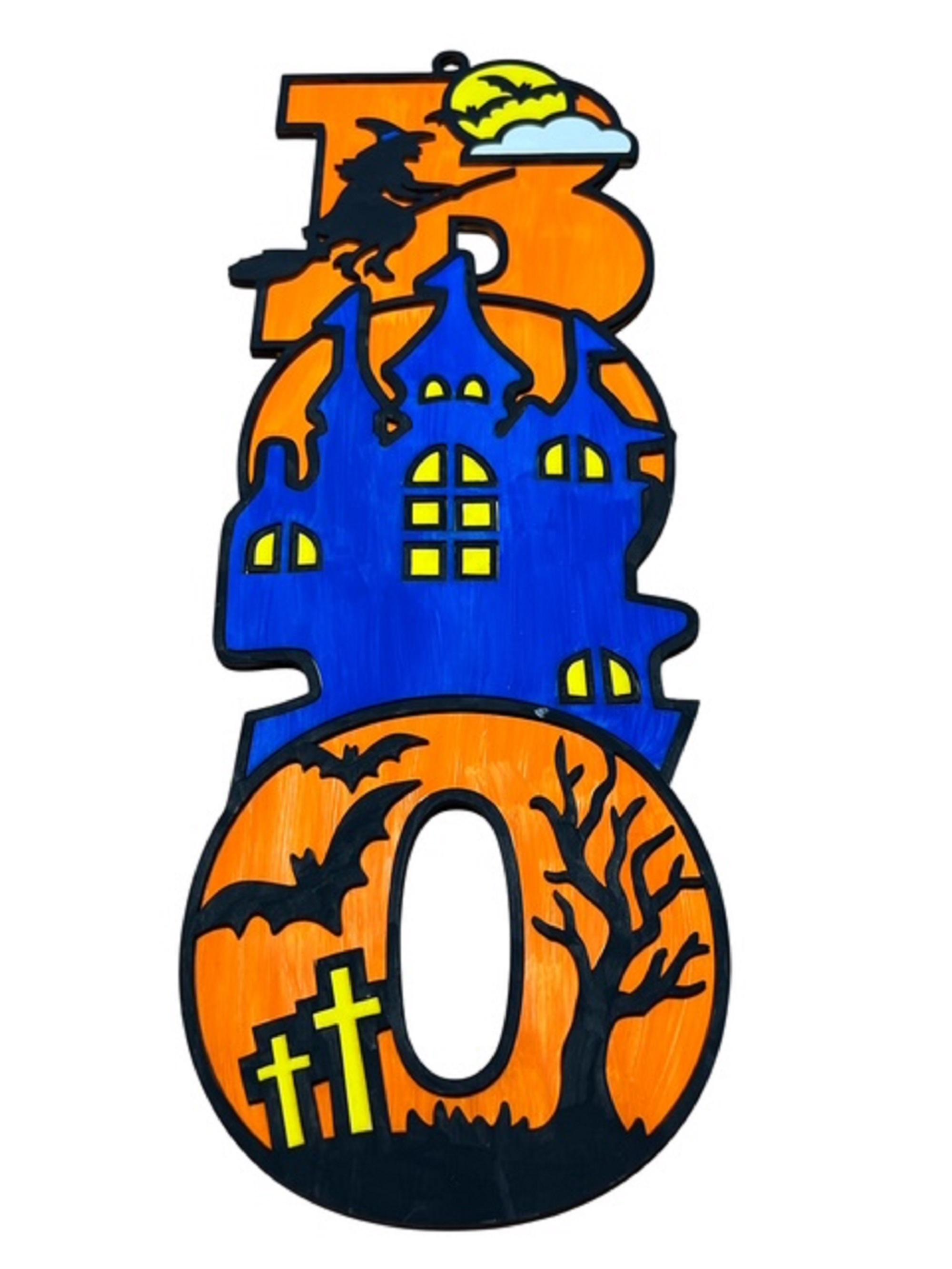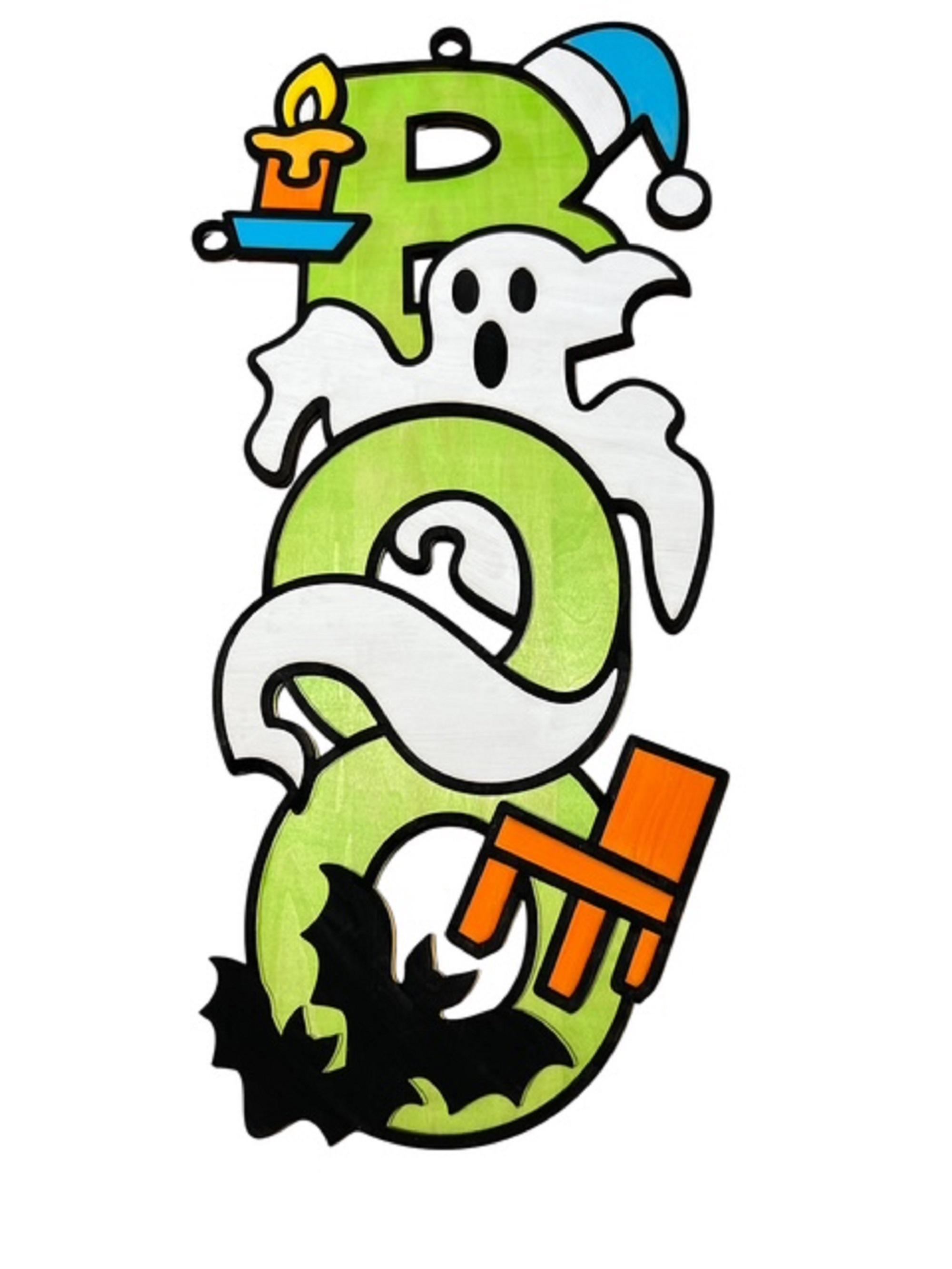 Boo Door Hanger: Spooky Halloween Basswood Sign, Kids Room Decor