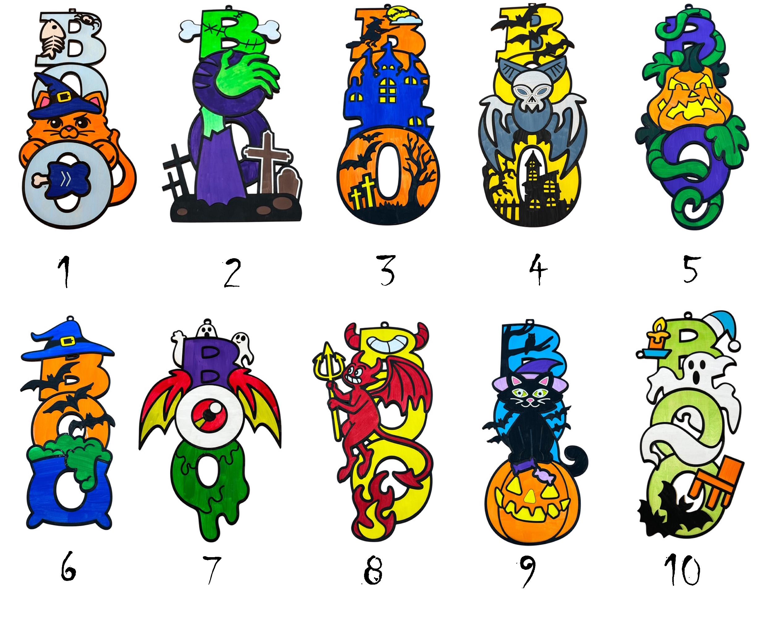 Add a touch of spooky fun to your Halloween decor with this charming Boo Door Hanger! Perfect for kids' rooms, entryways, or any space that needs a festive Halloween boost, this Halloween wall décor features ten fun and playful styles that bring a cheerful, spooky vibe to your home. Each design showcases adorable, colorful characters and classic Halloween symbols, making it a delightful addition to your holiday decorations.
