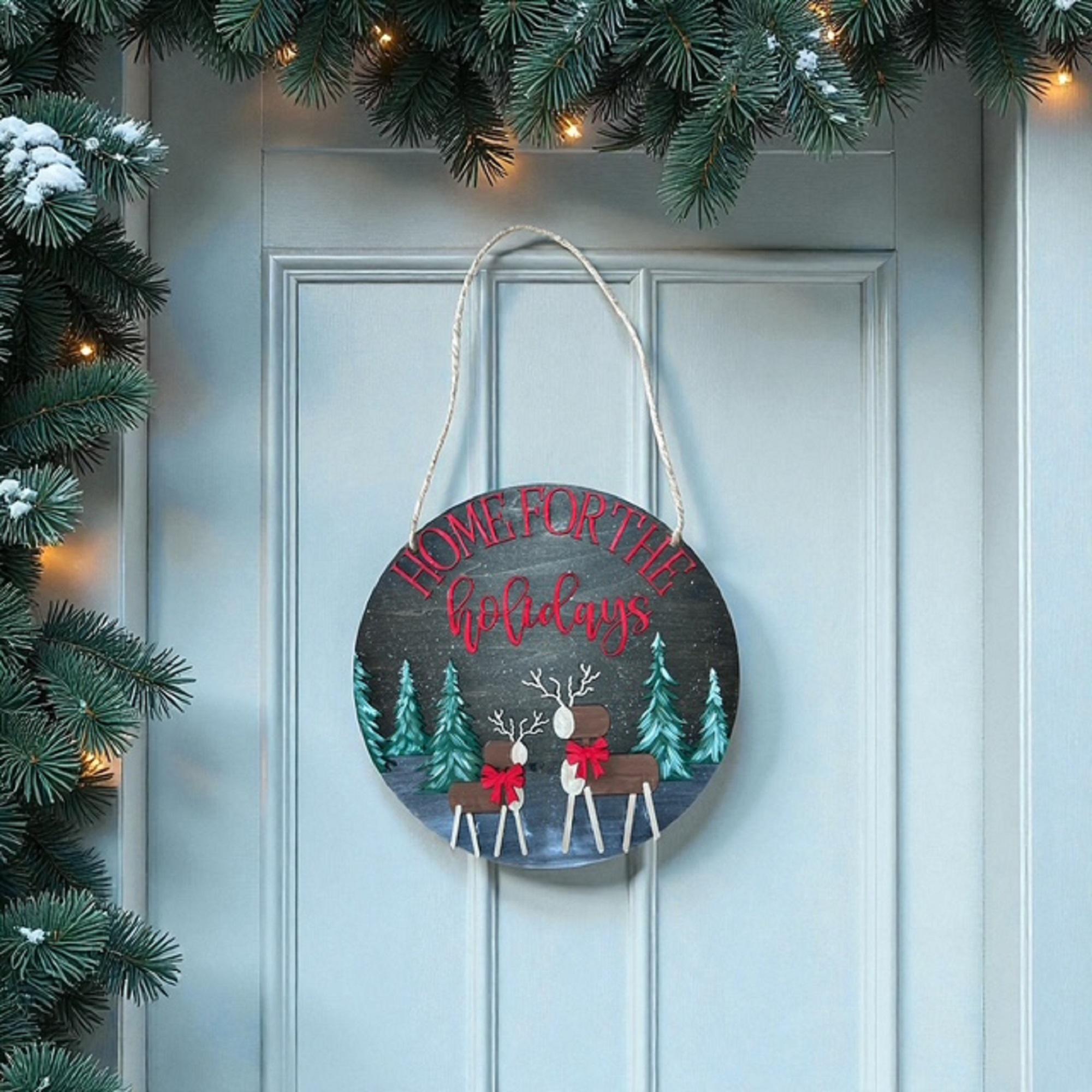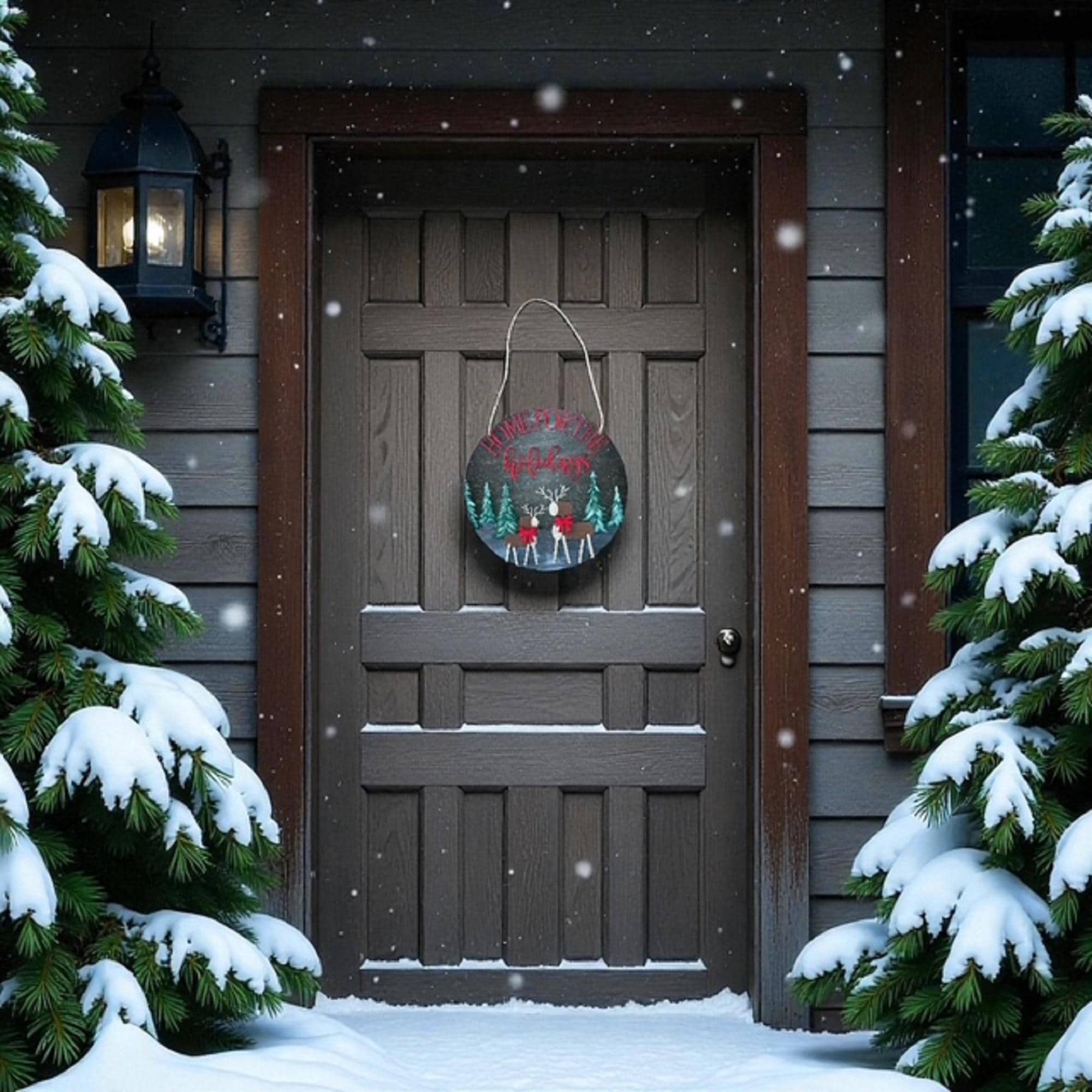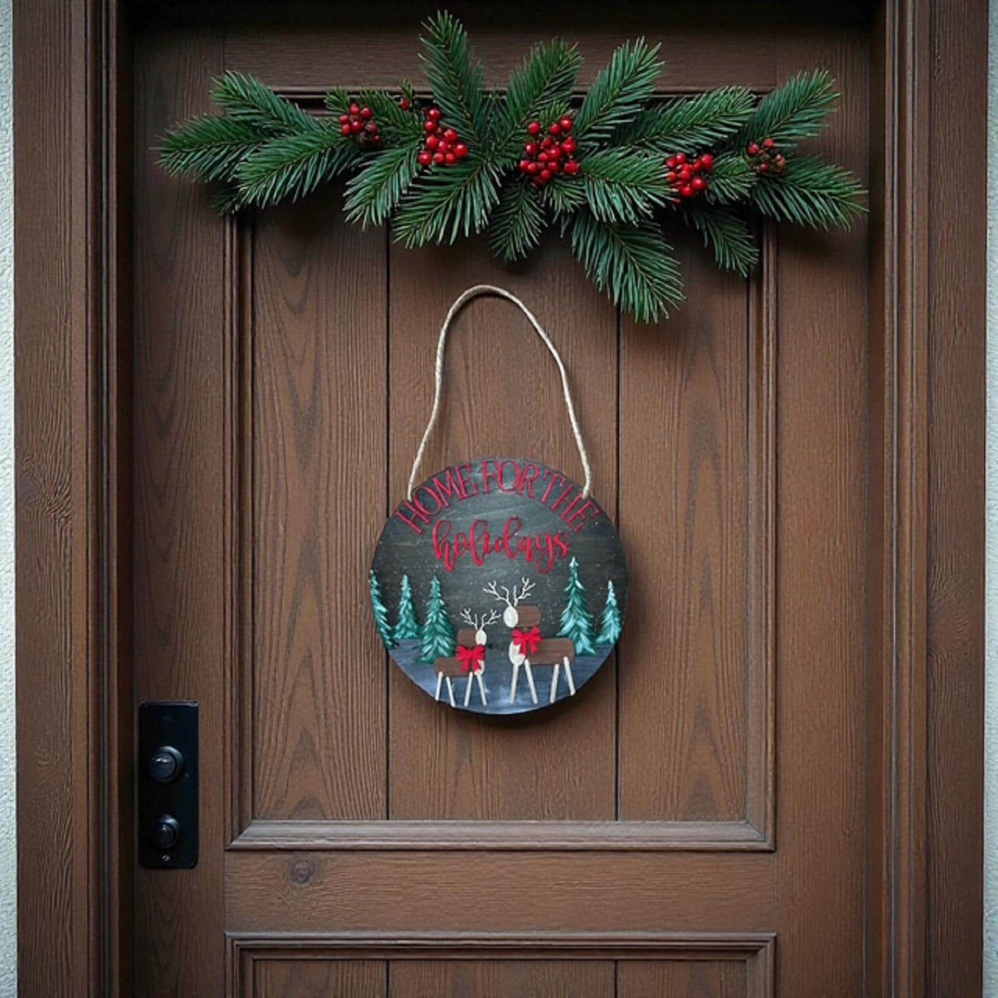 Rustic Deer Holiday Door Hanger, Winter Woodland Scene, Christmas Décor
